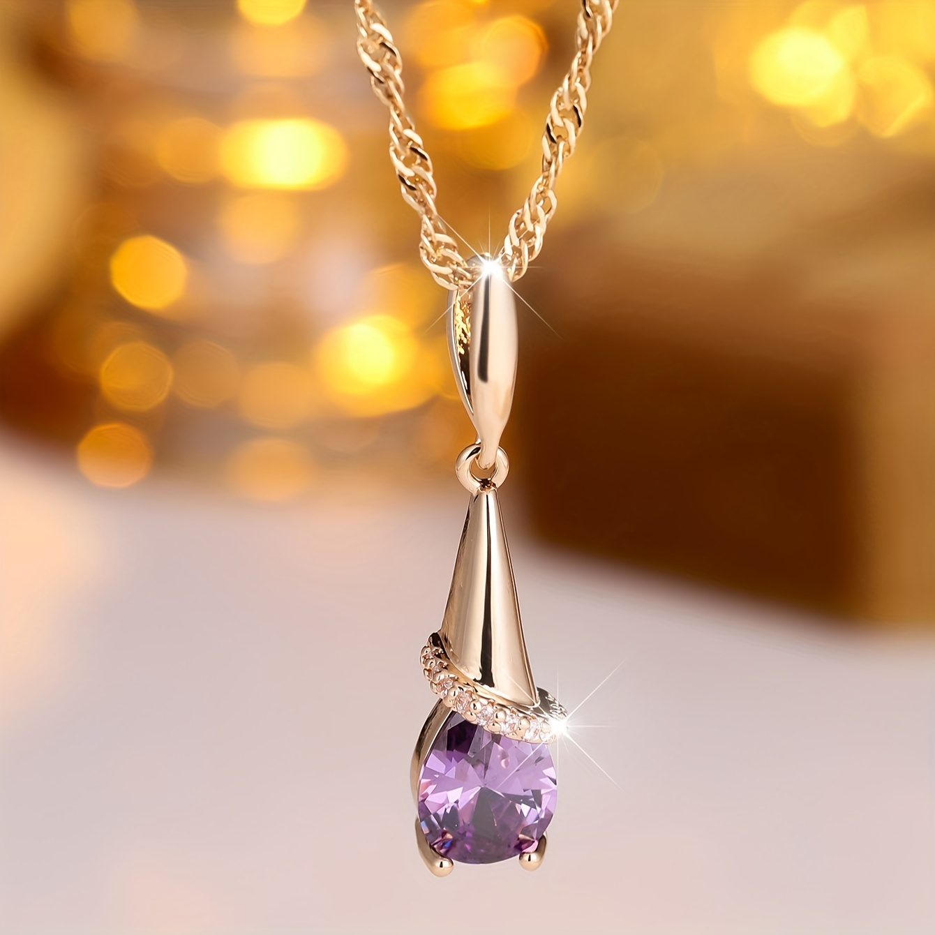 1 elegant bohemian copper pendant necklace with purple synthetic Zirconia, Women's long pendant design, perfect for Casual Attire and gift giving, Thanksgiving is perfect