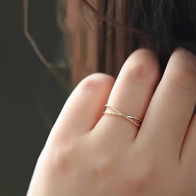 1 Elegant Ladies Gold Cross Ring - Chic and minimalist cross design, copper strap with textured strap - perfect for everyday wear and casual wear