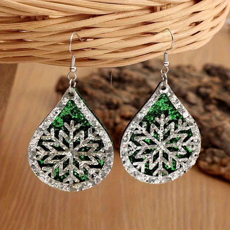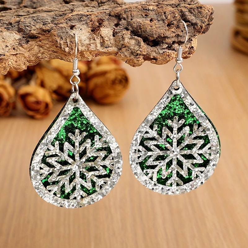 1 pair, Christmas snowflake earrings, sequined teardrop layered, hollow design, holiday jewelry, women's holiday accessories