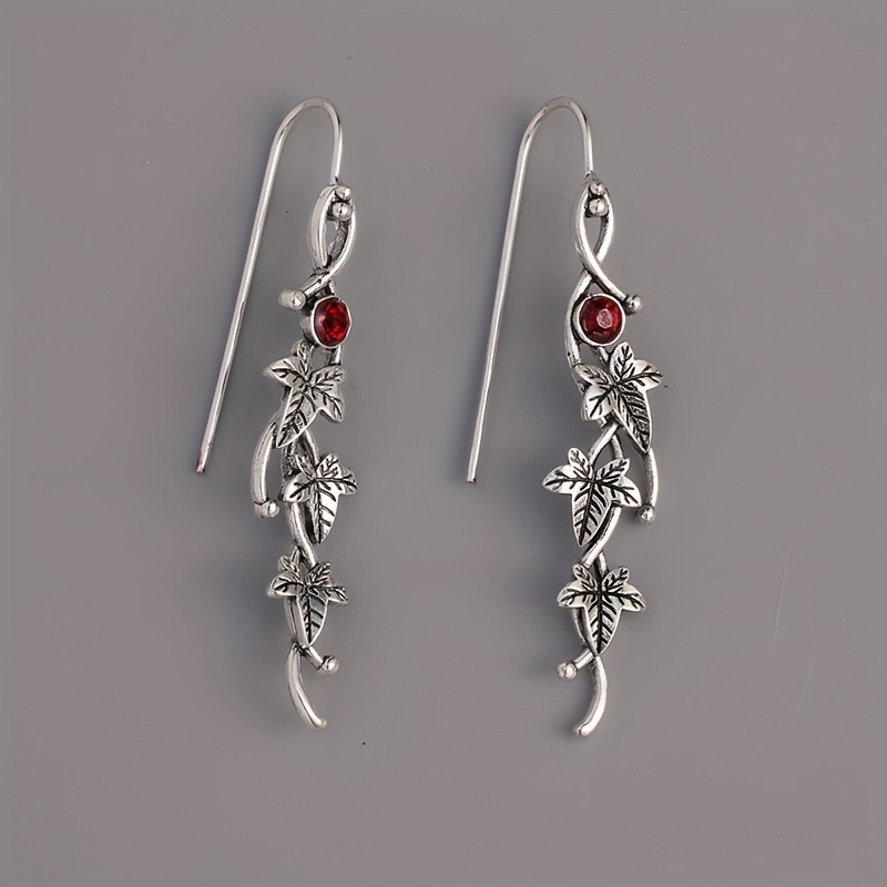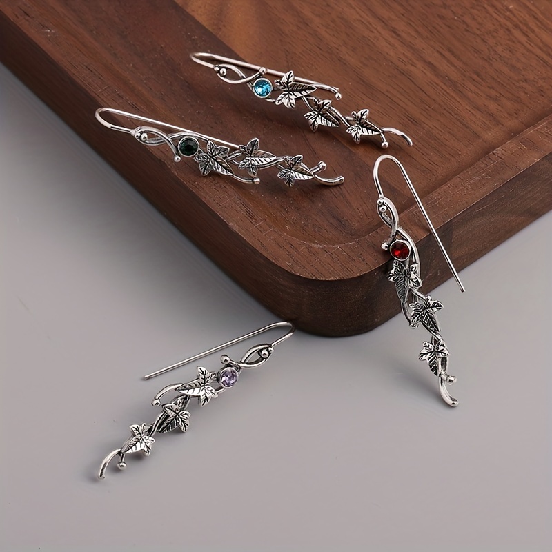 1 Pair Exquisite Silvery Boho Chic Engraved Leaf Drop Dangle Earrings - Inlaid with Colorful Synthetic Gemstones, 925 Silver Plated, Hypoallergenic, Durable, and Elegant - Perfect for Fashionistas and Bohemian Lovers