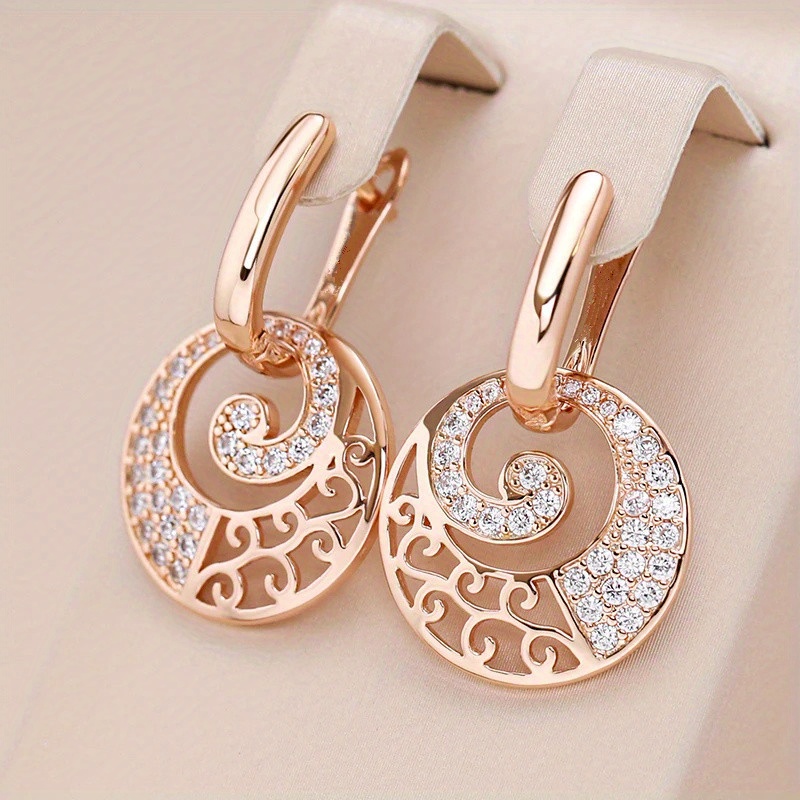 1 Pair Flower Drop Earrings, Golden Cubic Zirconia Accessories Jewelry