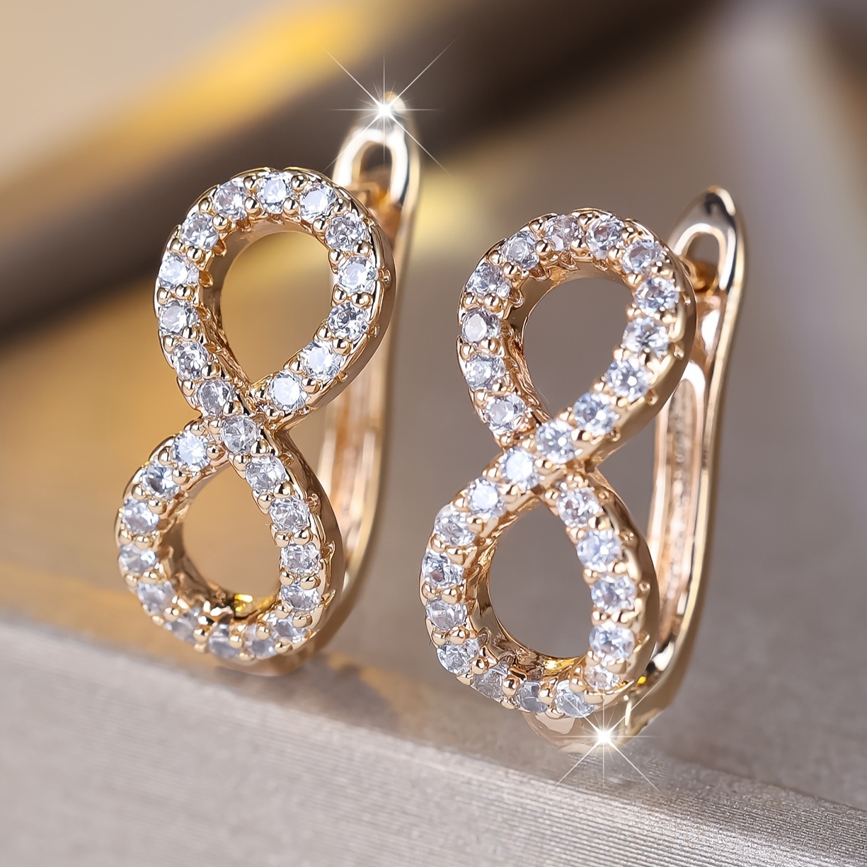 1 pair of elegant bohemian infinite ring earrings, synthetic square crystal zircon, copper pillar, women's fashion wedding jewelry, bridal accessories, Valentine's Day gifts, all seasons, wedding accessories