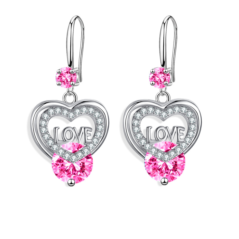 1 pair of elegant heart-shaped hanging earrings set with sparkling blue gemstones and "I Love You" inscription - copper, perfect for weddings and Valentine's Day gifts, lovely earrings