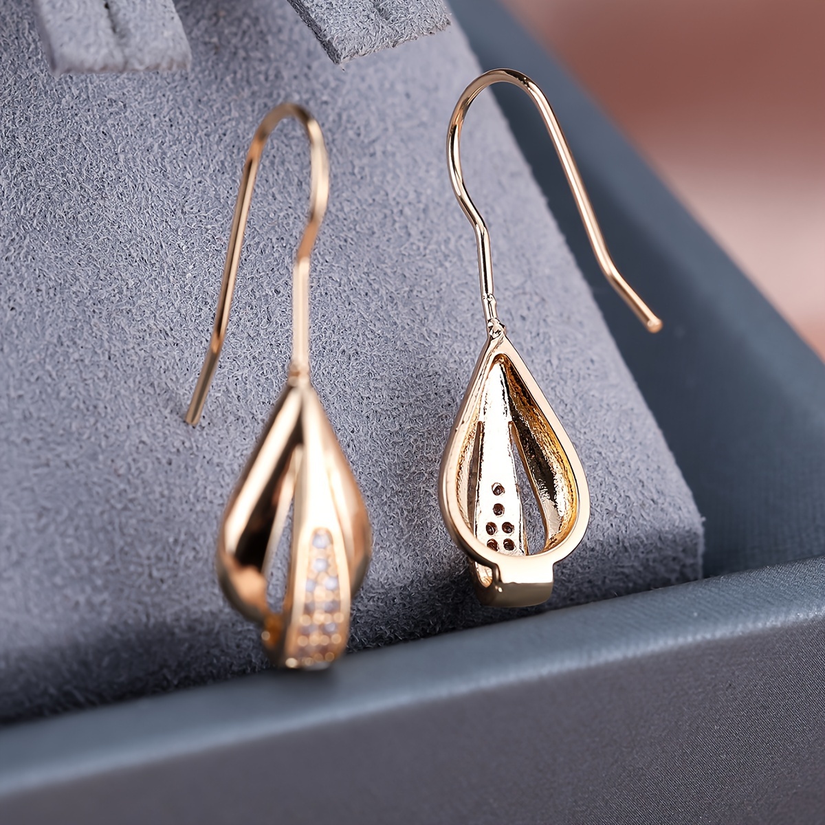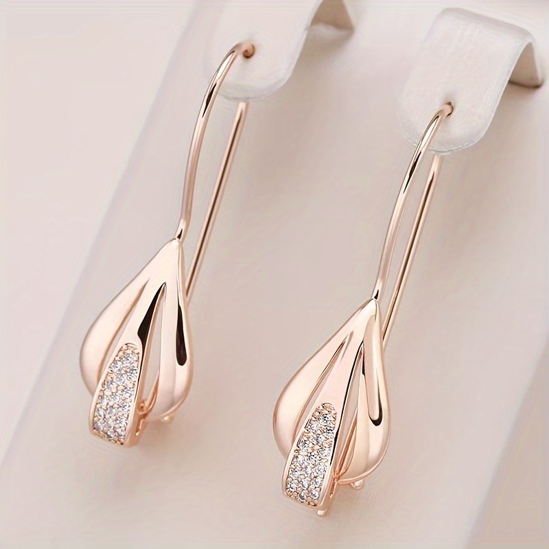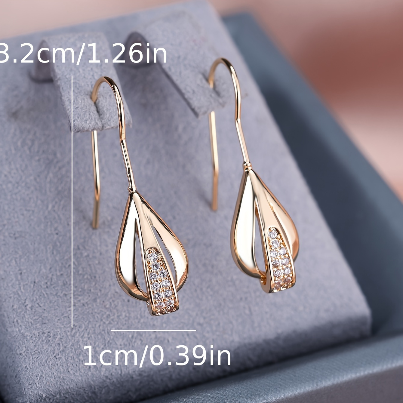 1 Pair of Gold Zirconia Long Earrings Women's Glossy Floral Ethnic Bride Vintage Jewelry, Valentine's Day