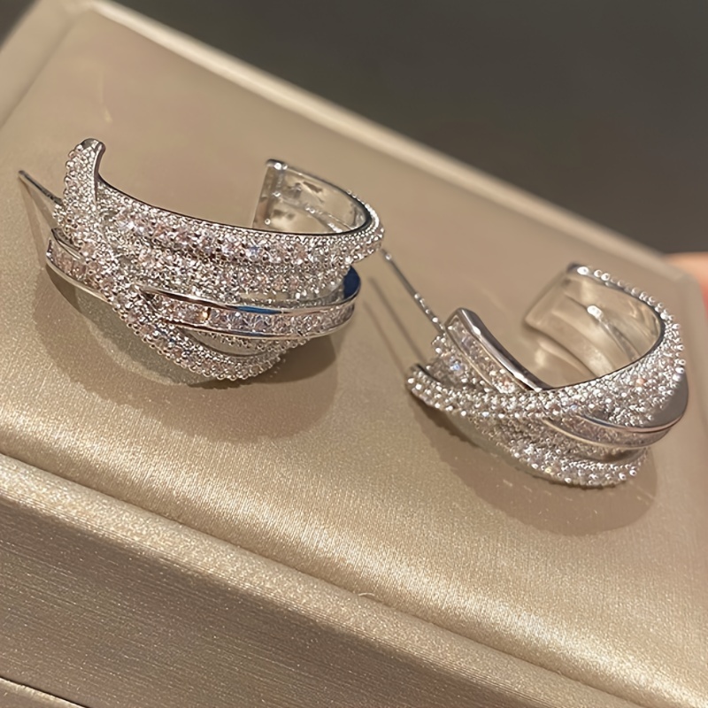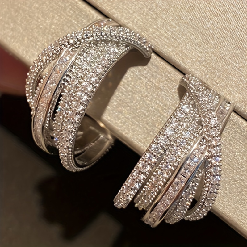 1 pair of luxury women's fashion circle earrings - elegant multi-layer interwoven design, sparkling square crystal zircon, nickel-free copper, perfect for daily wear and banquets, novel earrings