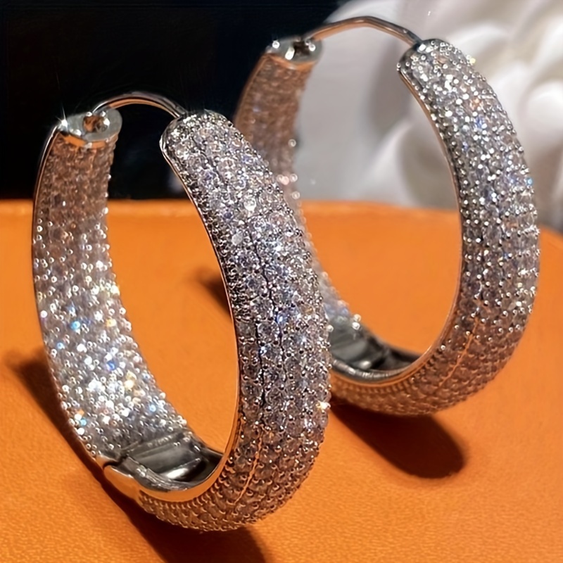 1 pair of Women's fashion ring earrings, luxury intensive shining Zirconia large round earrings, Women's wedding high jewelry