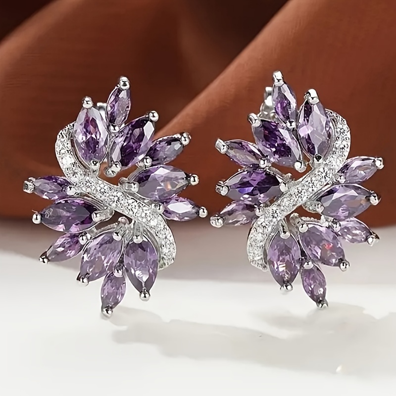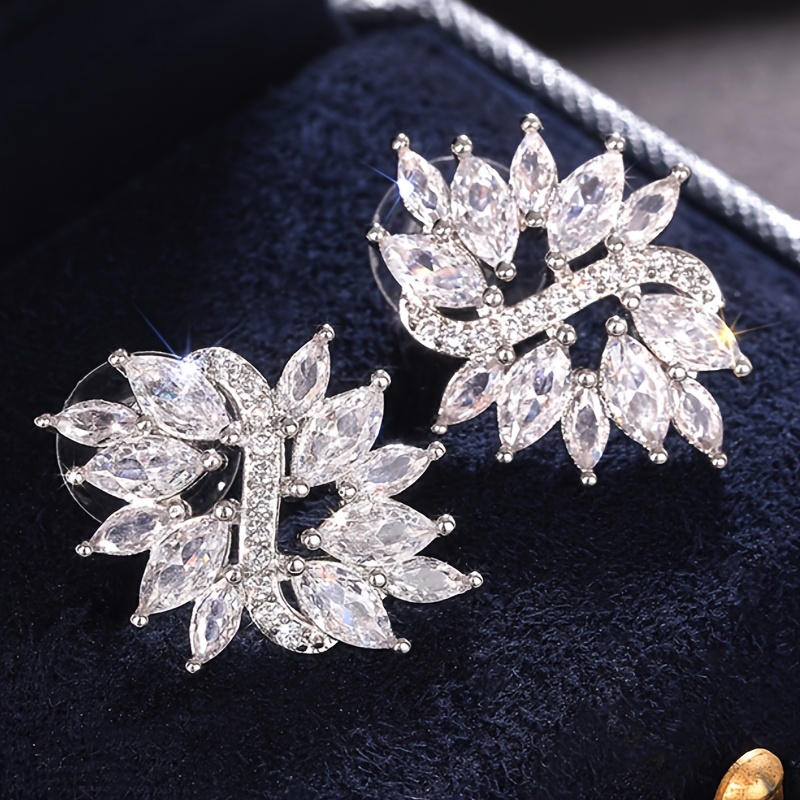 1 pair of women's fashion stud earrings, beautifully inlaid horse eye-cut synthetic zircon flower stud earrings, bride wedding engagement wedding earrings