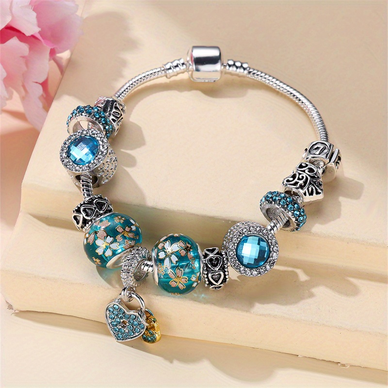 1 piece silver love blue bead bracelet DIY pendant bracelet Valentine's Day jewelry gift, suitable for pretend play, perfect for winter and New Year