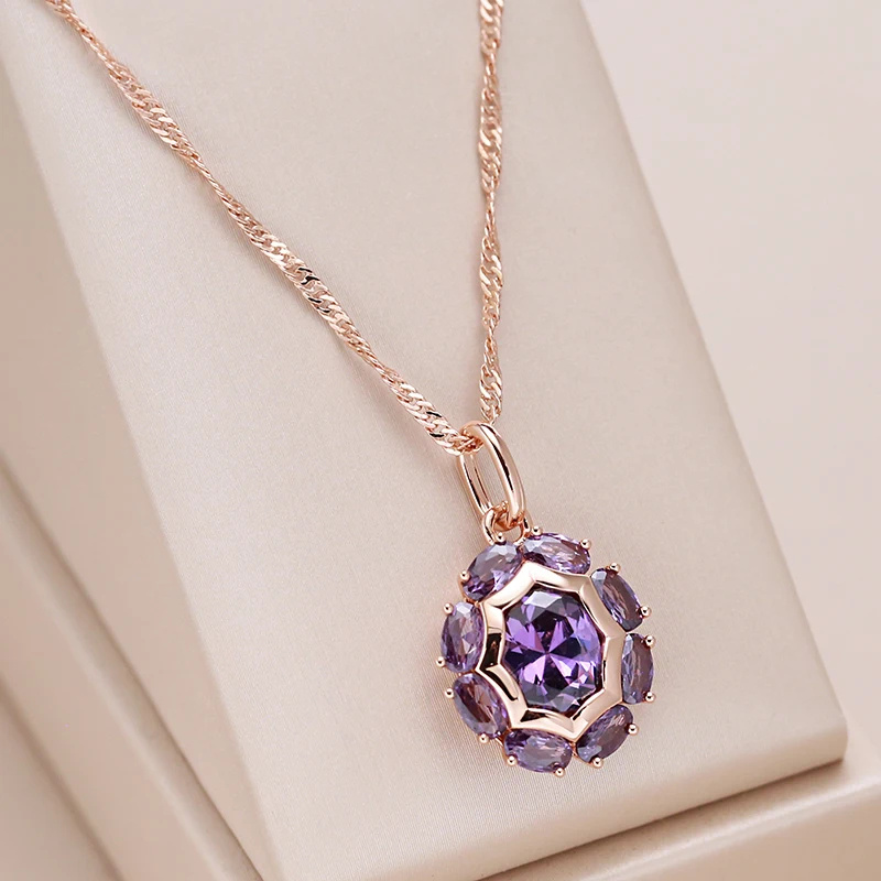 1 Sparkling Oval Purple Stone Pendant Necklace Women's Luxury Gold Party Everyday Jewelry Perfect for Pretend Play, Perfect for Winter, New Year