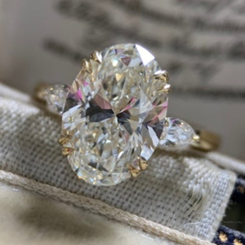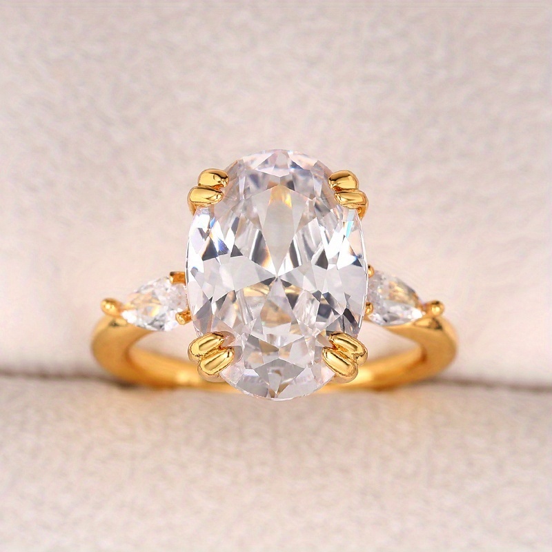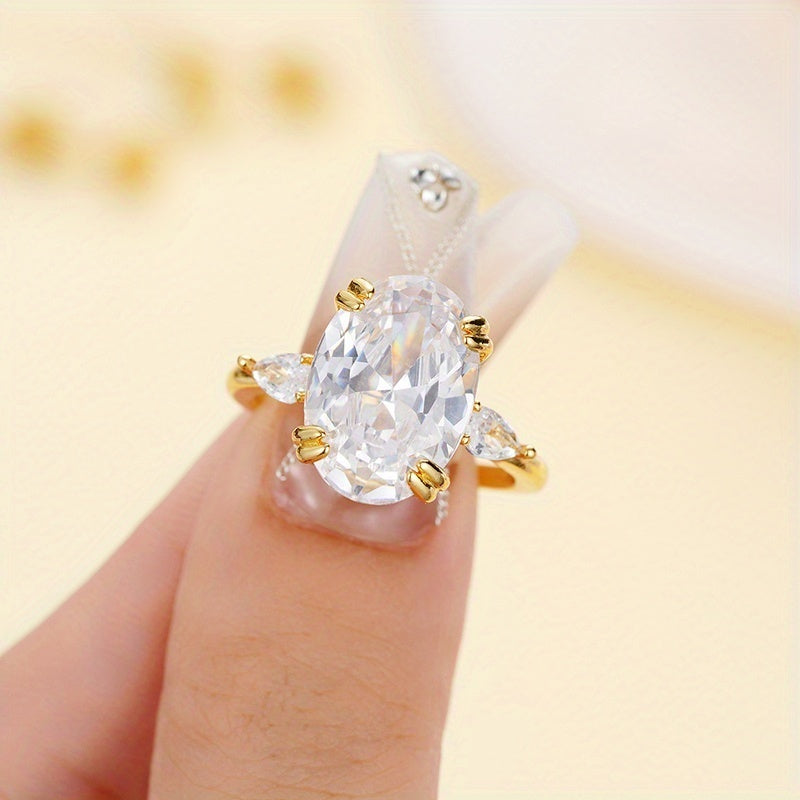 18k Gold Plated 4 Claw Setting Oval White Cubic zirconia Ring For Women Engagement Wedding Jewelry Girl Daily Casual Accessories