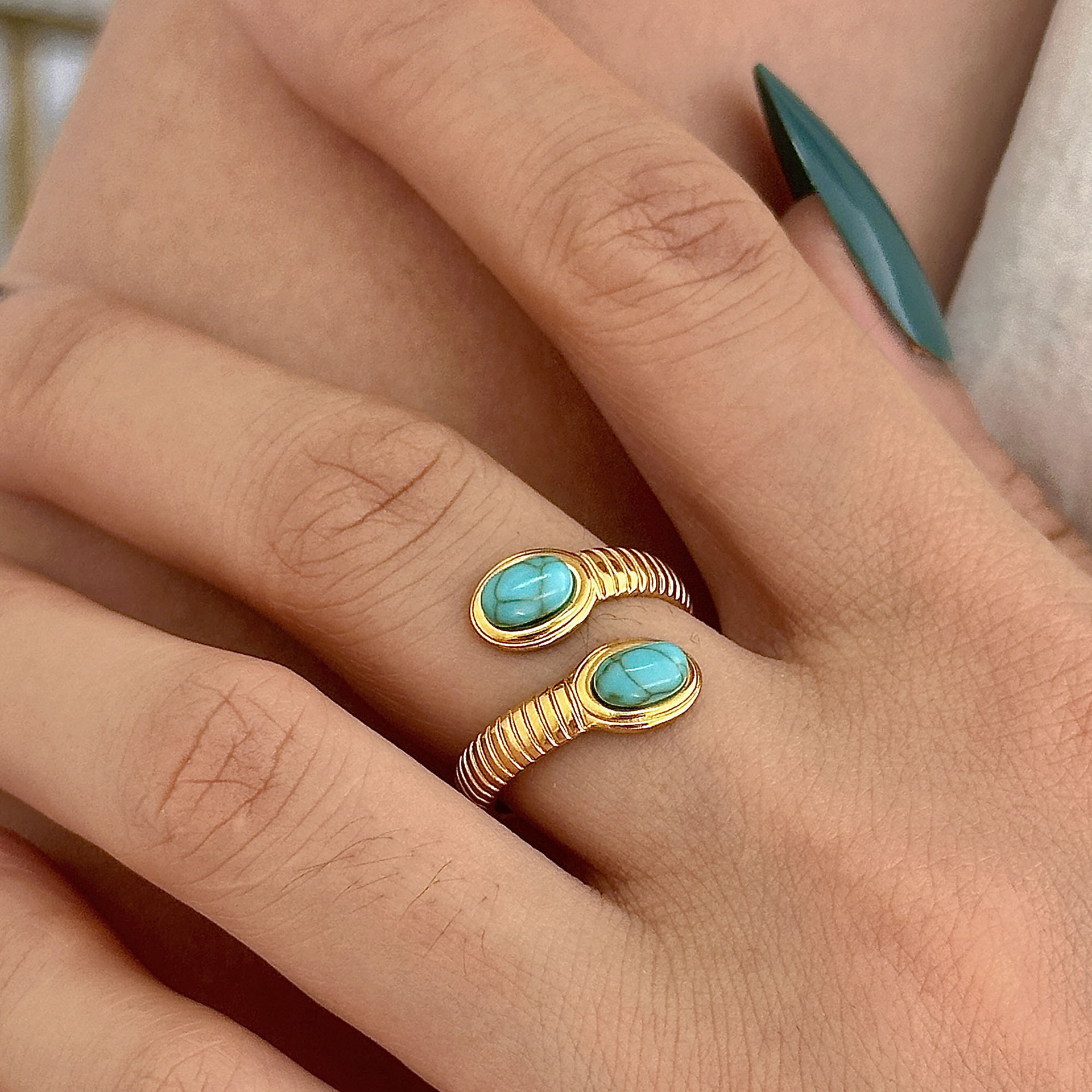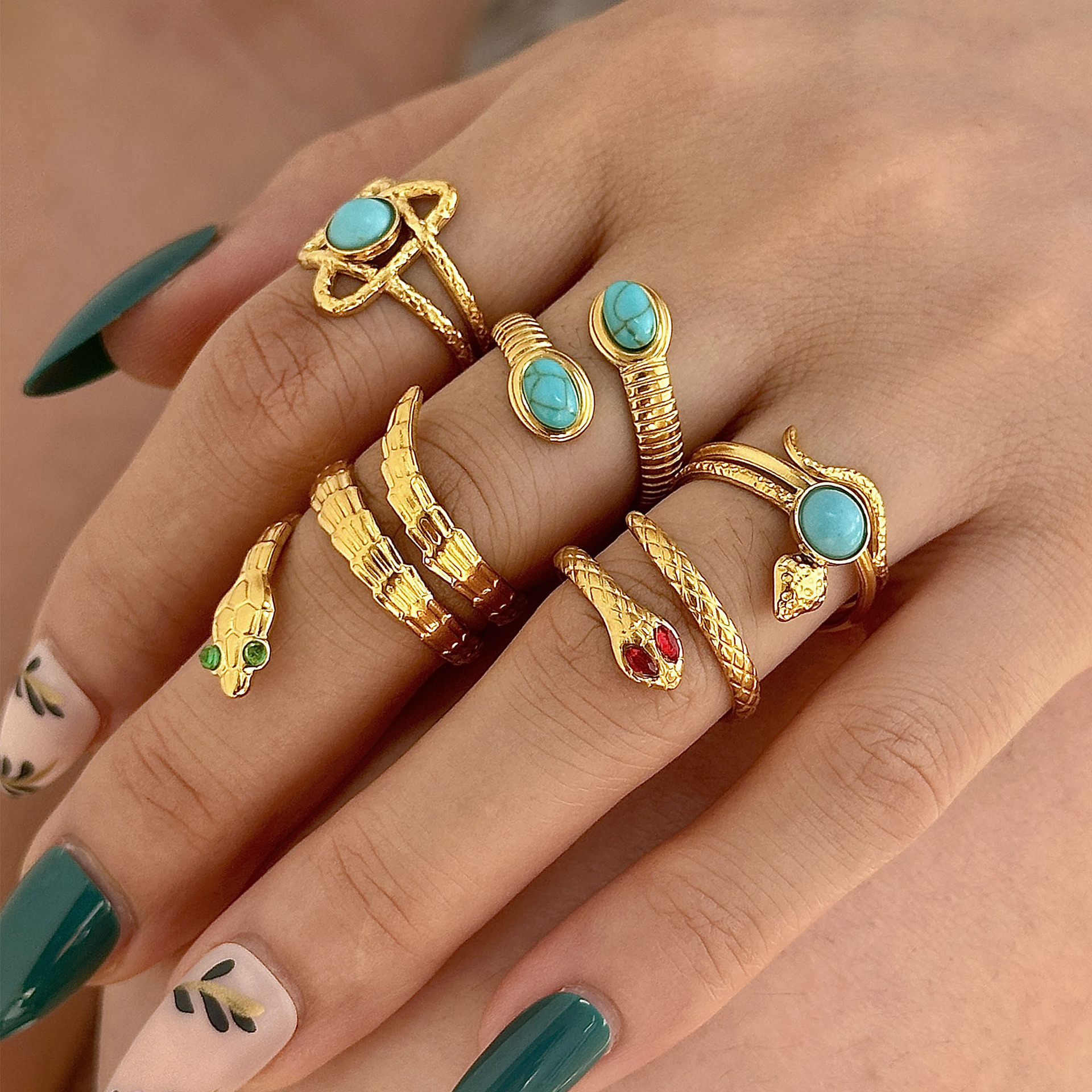 18K Gold Serpentine Turquoise Opening Single Bracelet