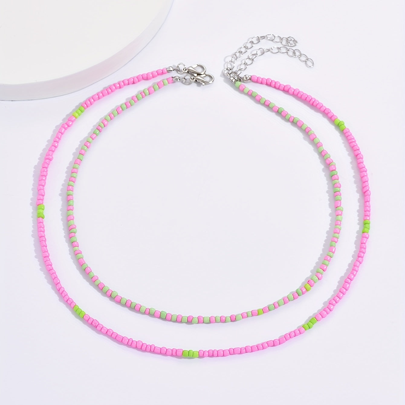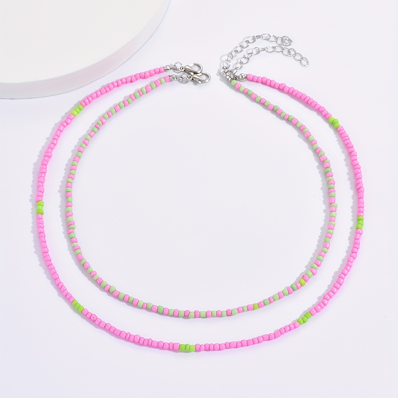 2 Bohemian handmade beaded rice necklaces, summer beach vacation accessories