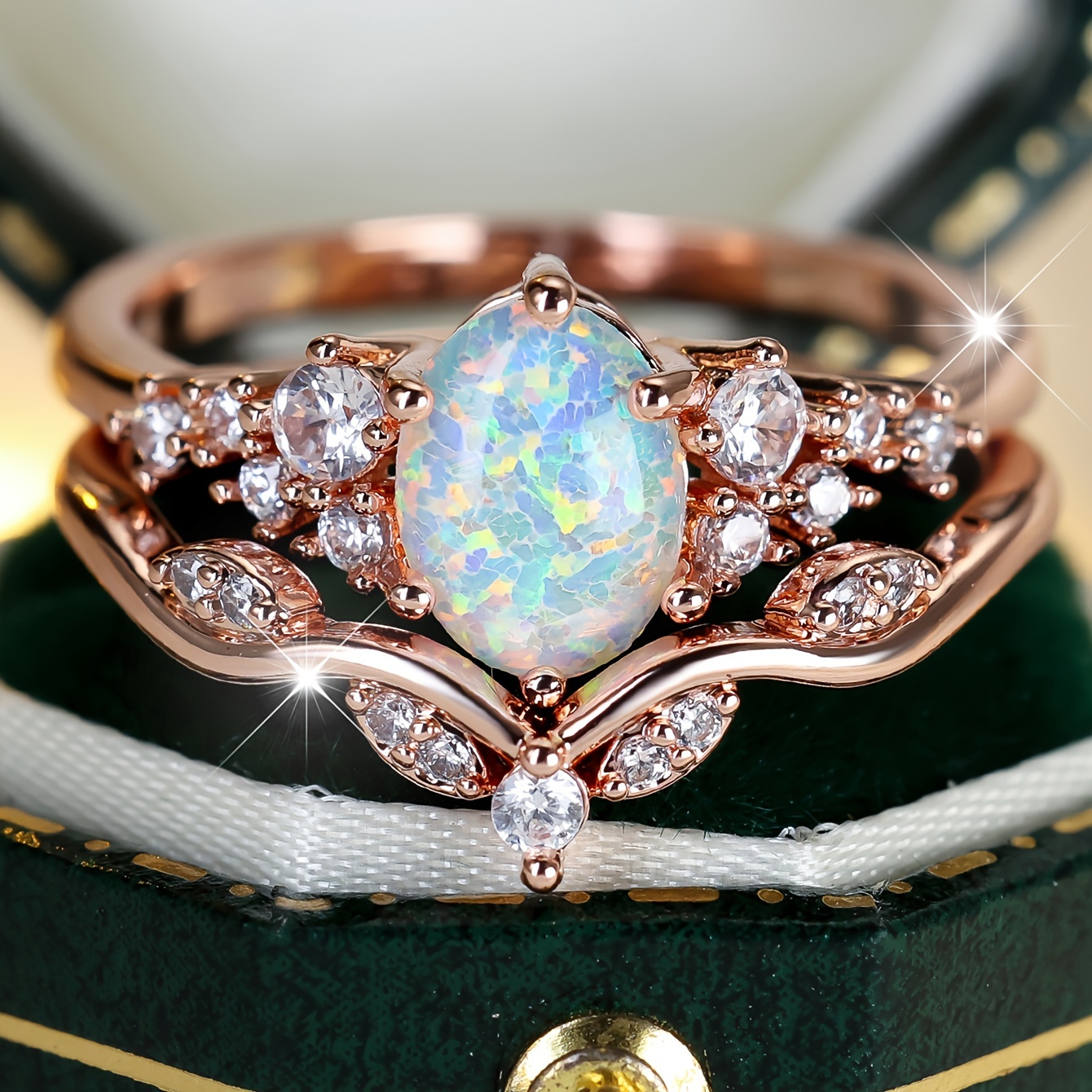2 exquisite luxury egg-shaped white synthetic opal edged with white synthetic zircon ring, removable and wearable.