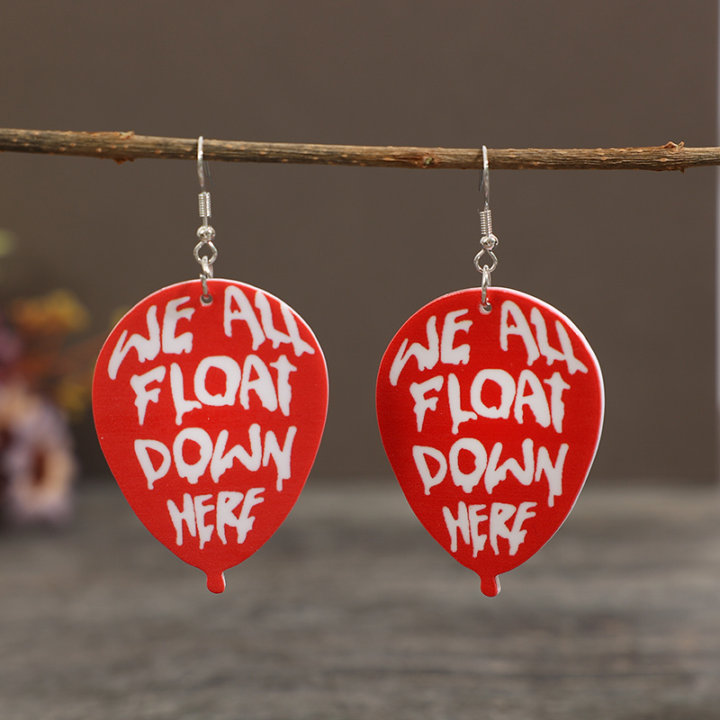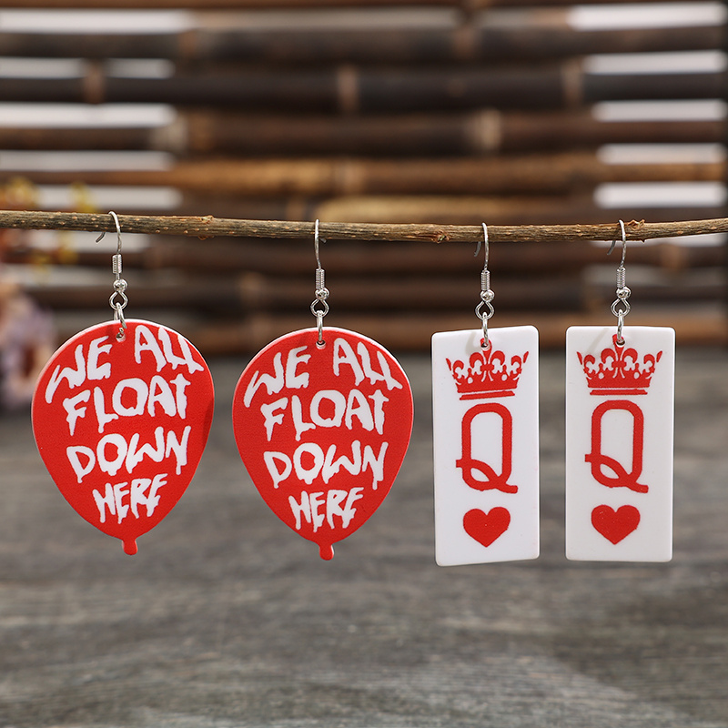 2 pairs of Halloween white funny letters red peach heart design pendant earrings set bohemian minimalist style acrylic jewelry fashion women's gift