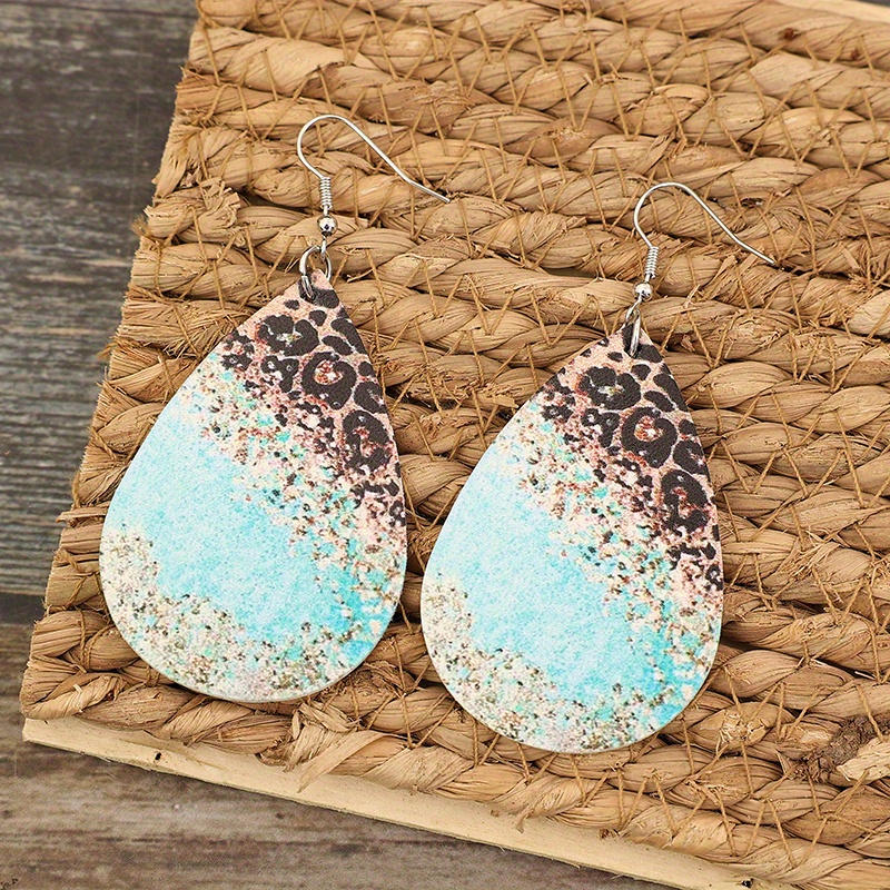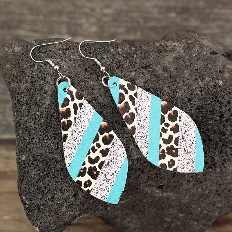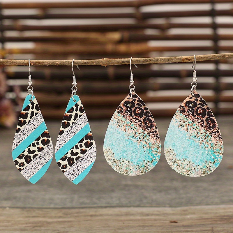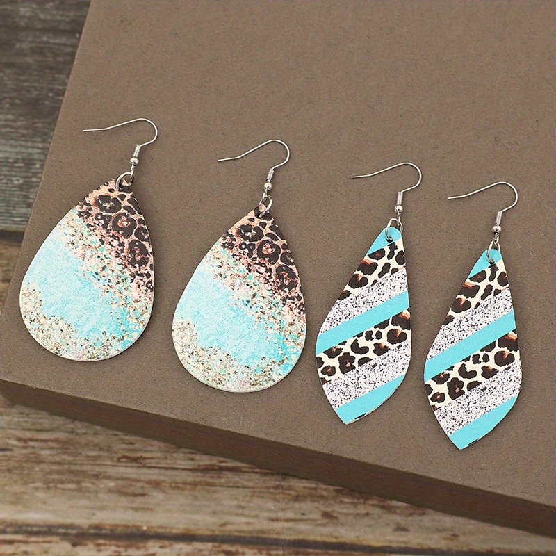 2 pairs/set of teardrop-shaped leopard print pendant earrings, retro minimalist style PU leather jewelry fashion women's gifts