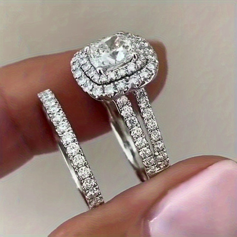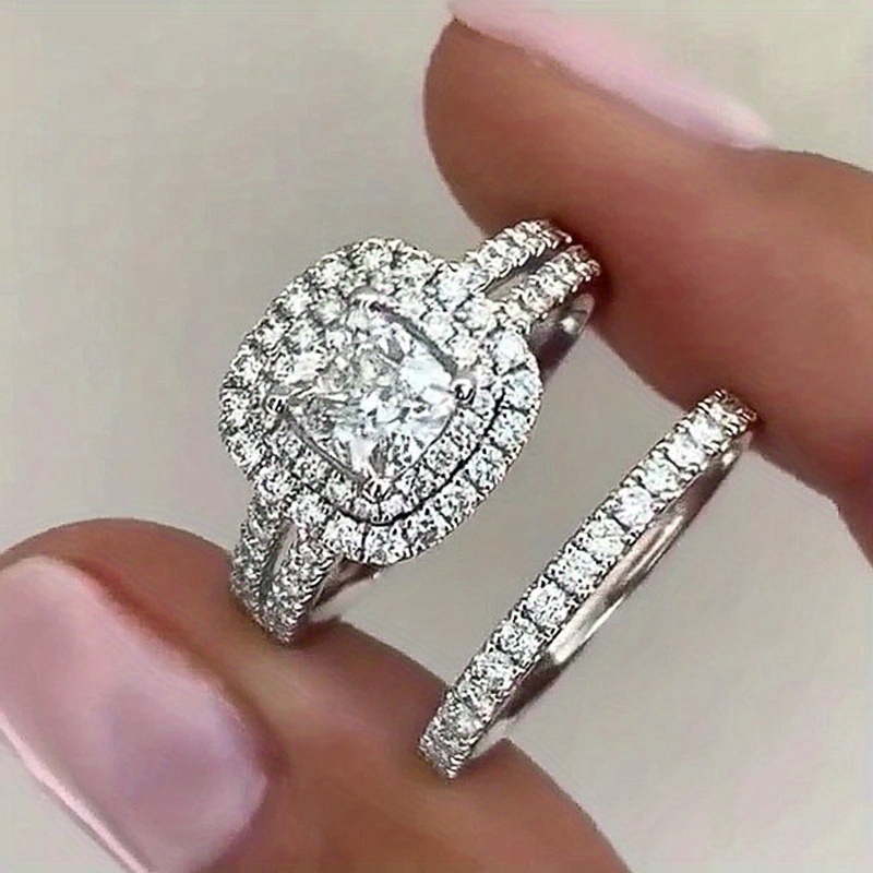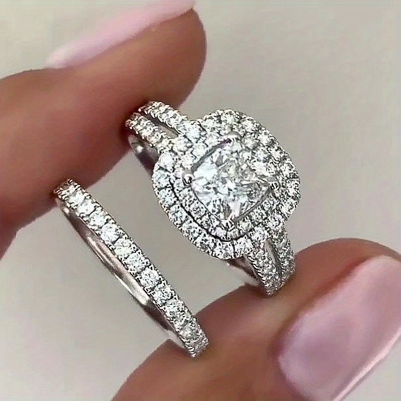 2-Piece Bridal Ring Set, Ladies Silver Zircon Ring, Romantic Engagement and Proposal Gift Jewelry
