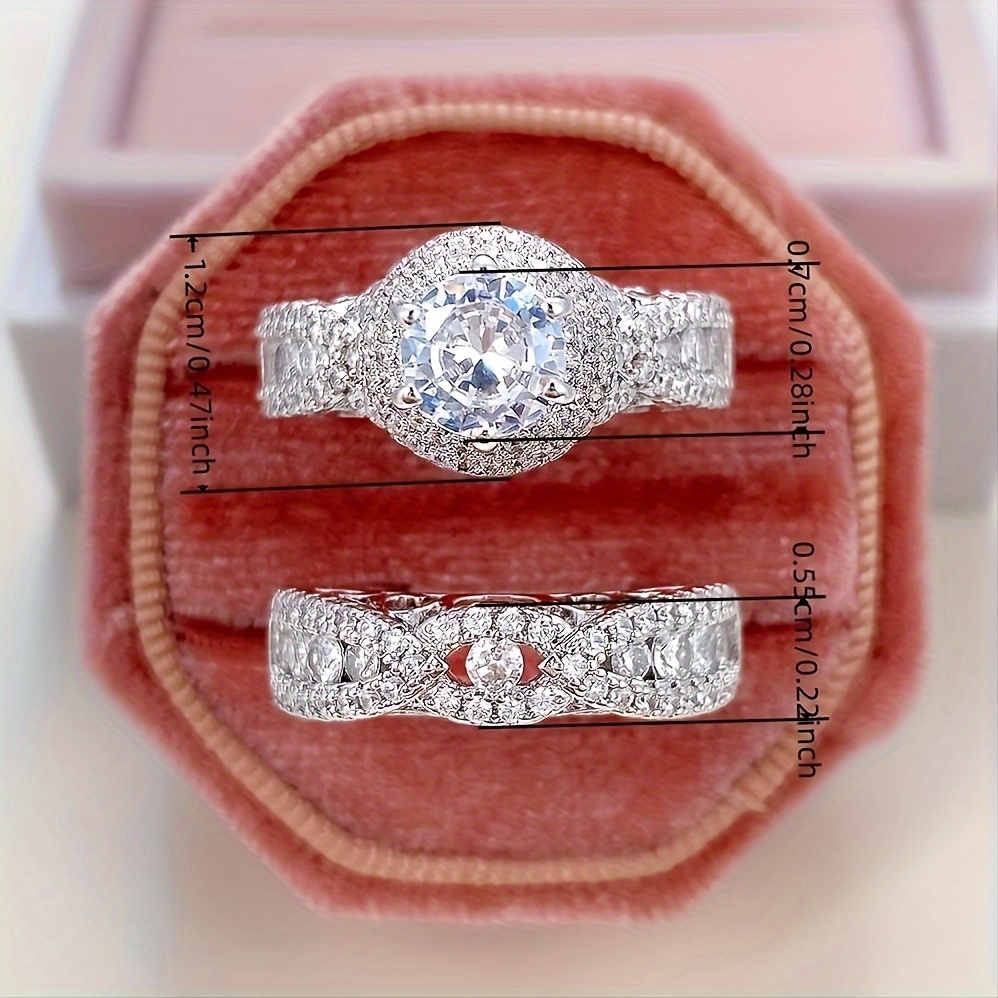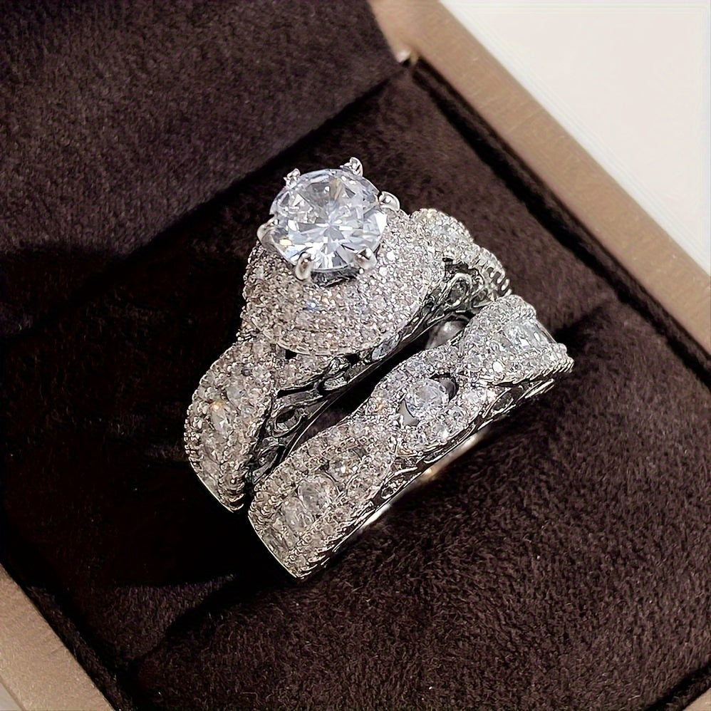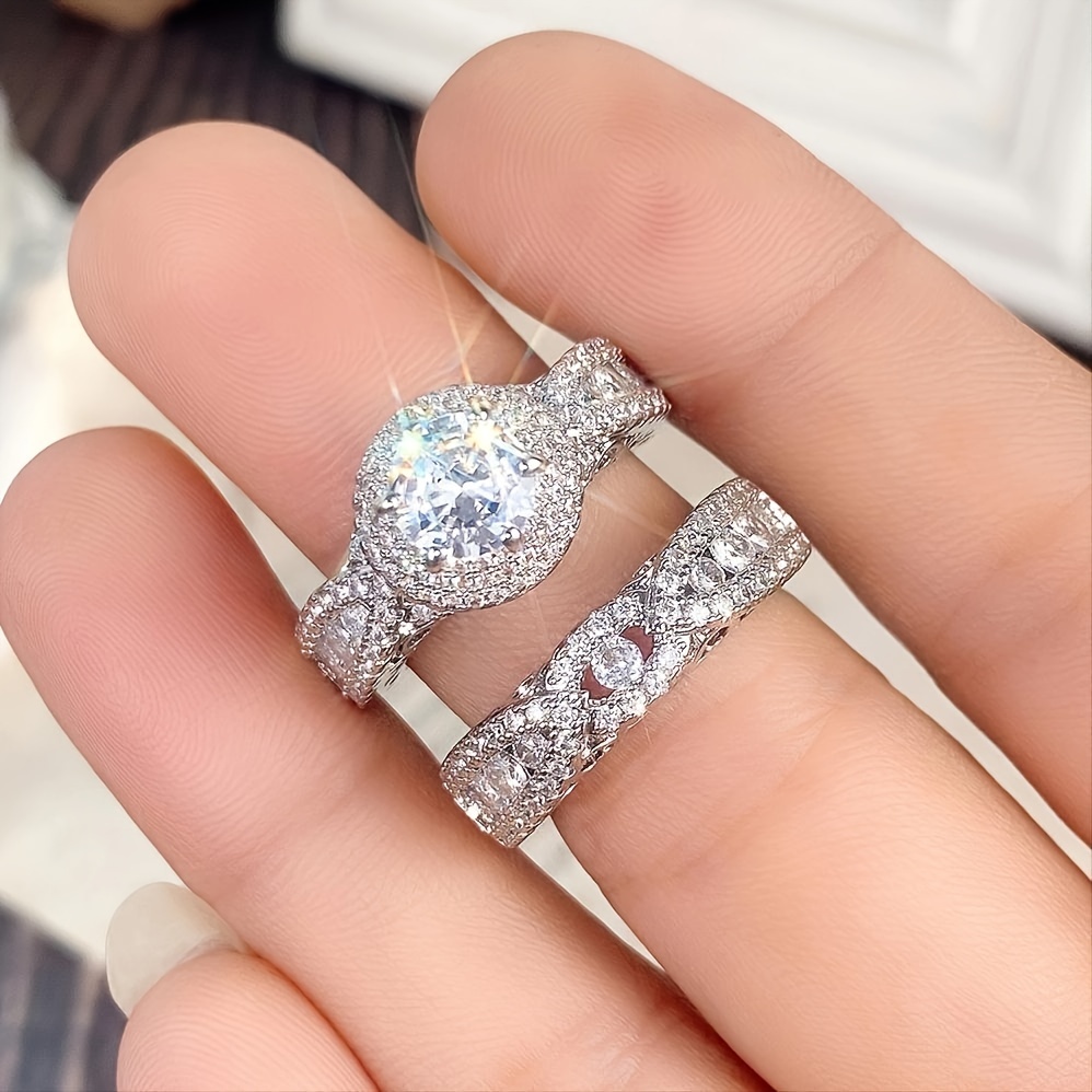 2pcs Elegant Wedding Ring Set with Minor Zircon - Luxury Copper Engagement Ring, April Birthstone, Perfect for Holiday and Casual Dresses, Special Occasion Rings | Elegant Ring Designs | Copper Bottom Rings, Wedding Ring Set for Couples