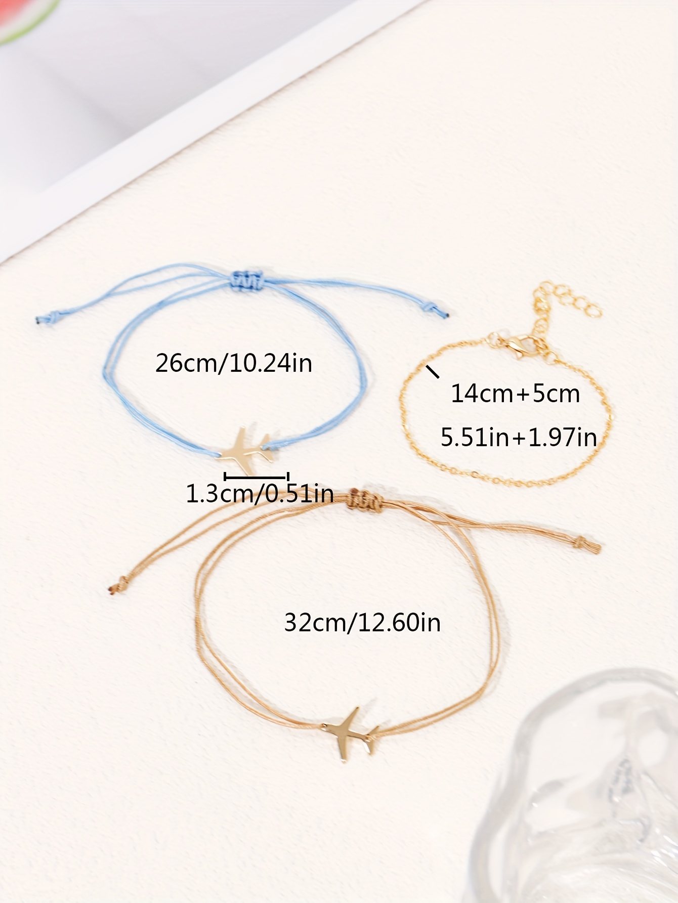 3-piece aircraft rope bracelet, adjustable couple wristband, stylish and minimalist style, suitable for parties and dates