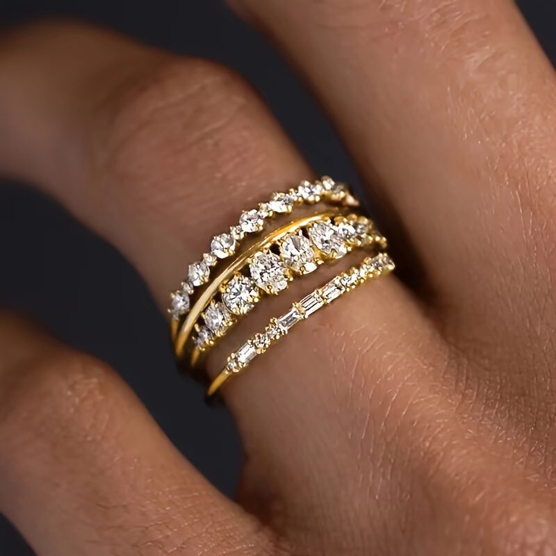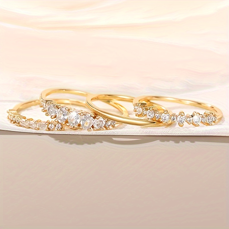 4 minimalist stacked rings 14k gold-plated full Zirconia engagement banquet decoration luxury jewelry