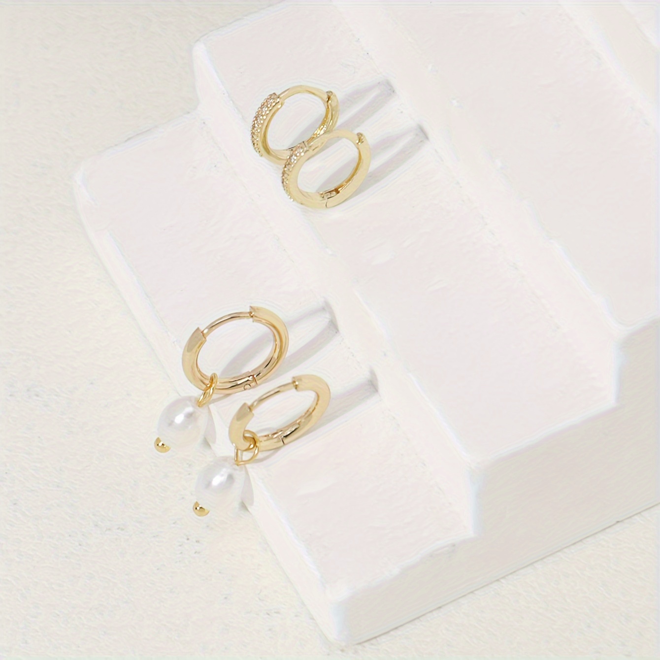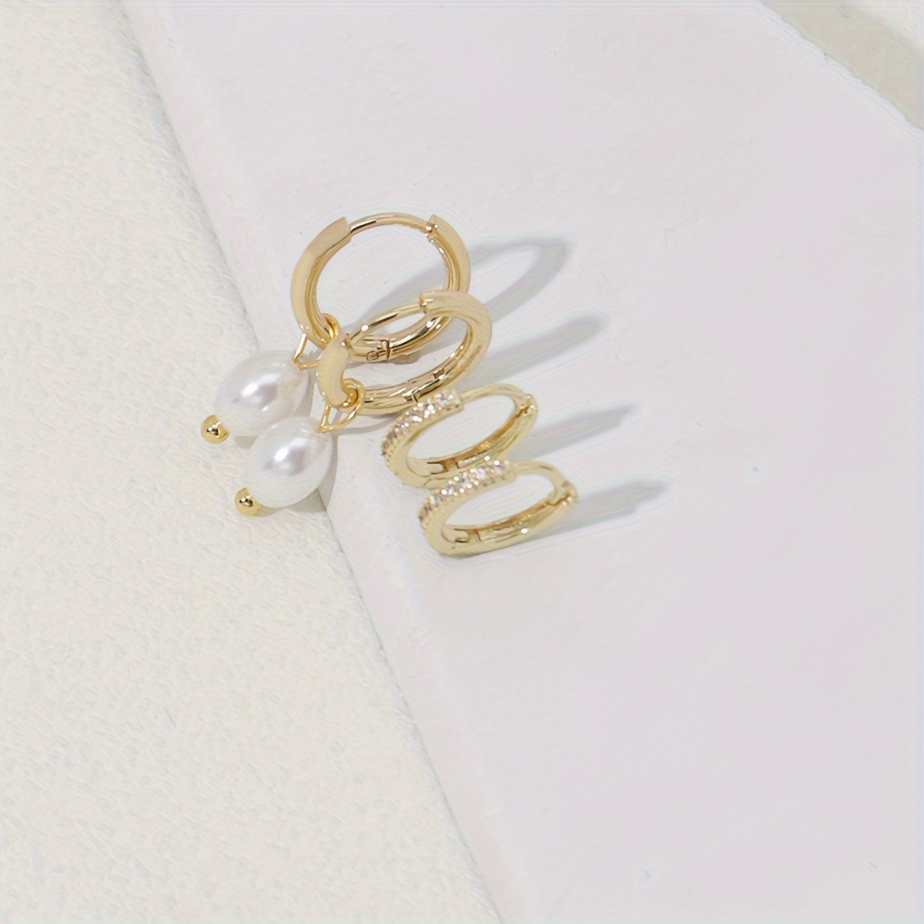 4pcs Exquisite Imitation Pearl Pendant with Micro-Zirconia Earrings Set, Pendant Ring Earrings, Women's Date Party Jewelry.