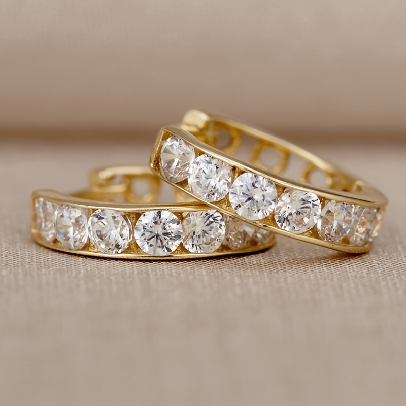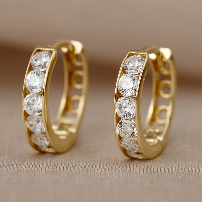 A pair of 18K gold plated ring earrings, exquisite zircon inlaid women's earrings, daily wear fashion accessories