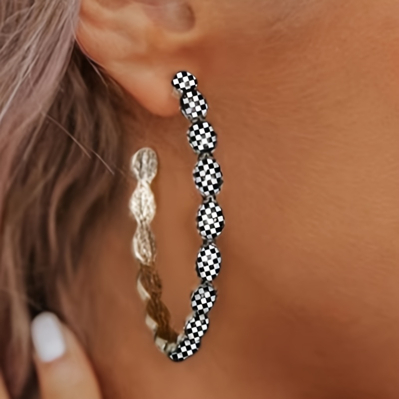 A pair of bohemian retro C-shaped plaid alloy stud earrings, iron pillars, unplated, creative retro-style jewelry