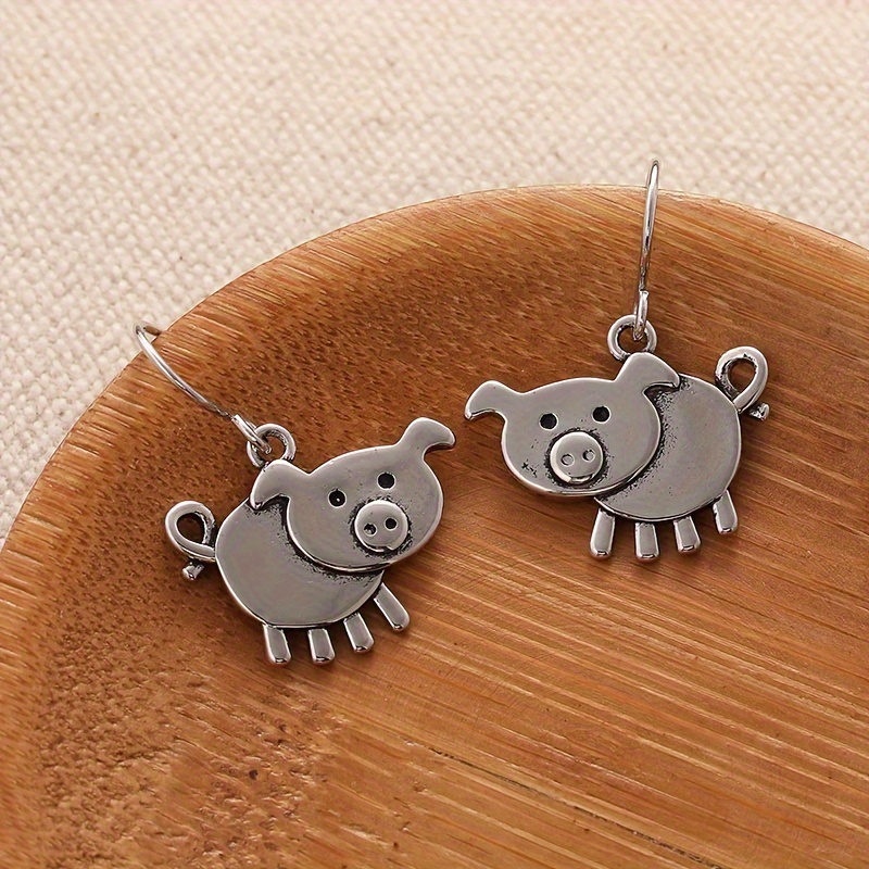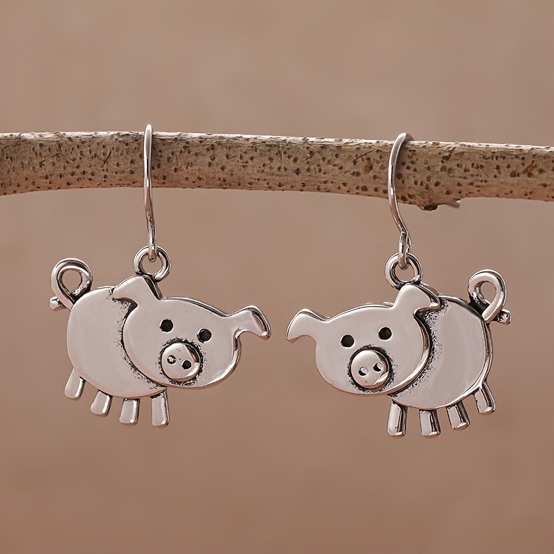 A pair of bohemian vintage pig-shaped pendant earrings, 925 silver-plated copper hooks, and charming animal jewelry for Casual Attire and gift giving, perfect for the Christmas season.