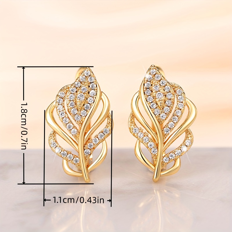 A pair of exquisite 18K gold-plated zircon leaf ring earrings, fashionable earrings for women's daily casual wear
