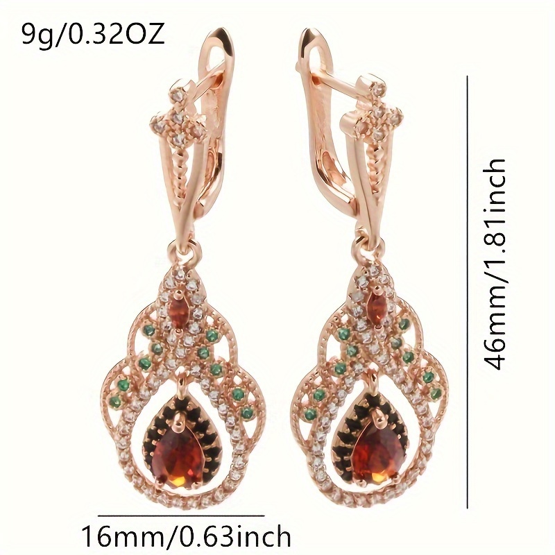 A pair of gold drop earrings for women, red flower earrings, vintage bohemian jewelry, and a pretend game gift for the Easter holidays