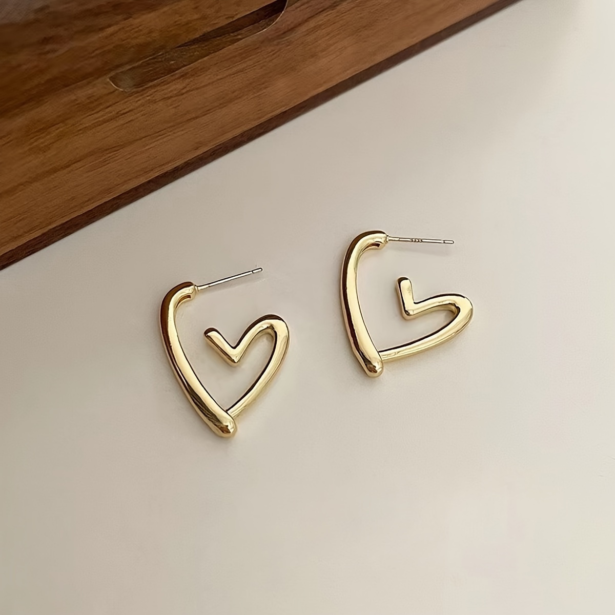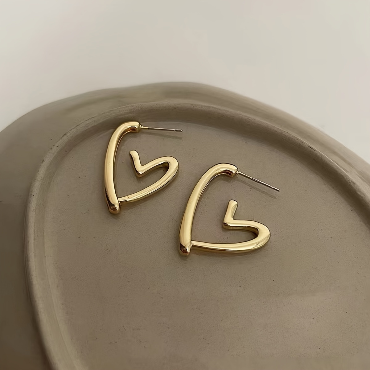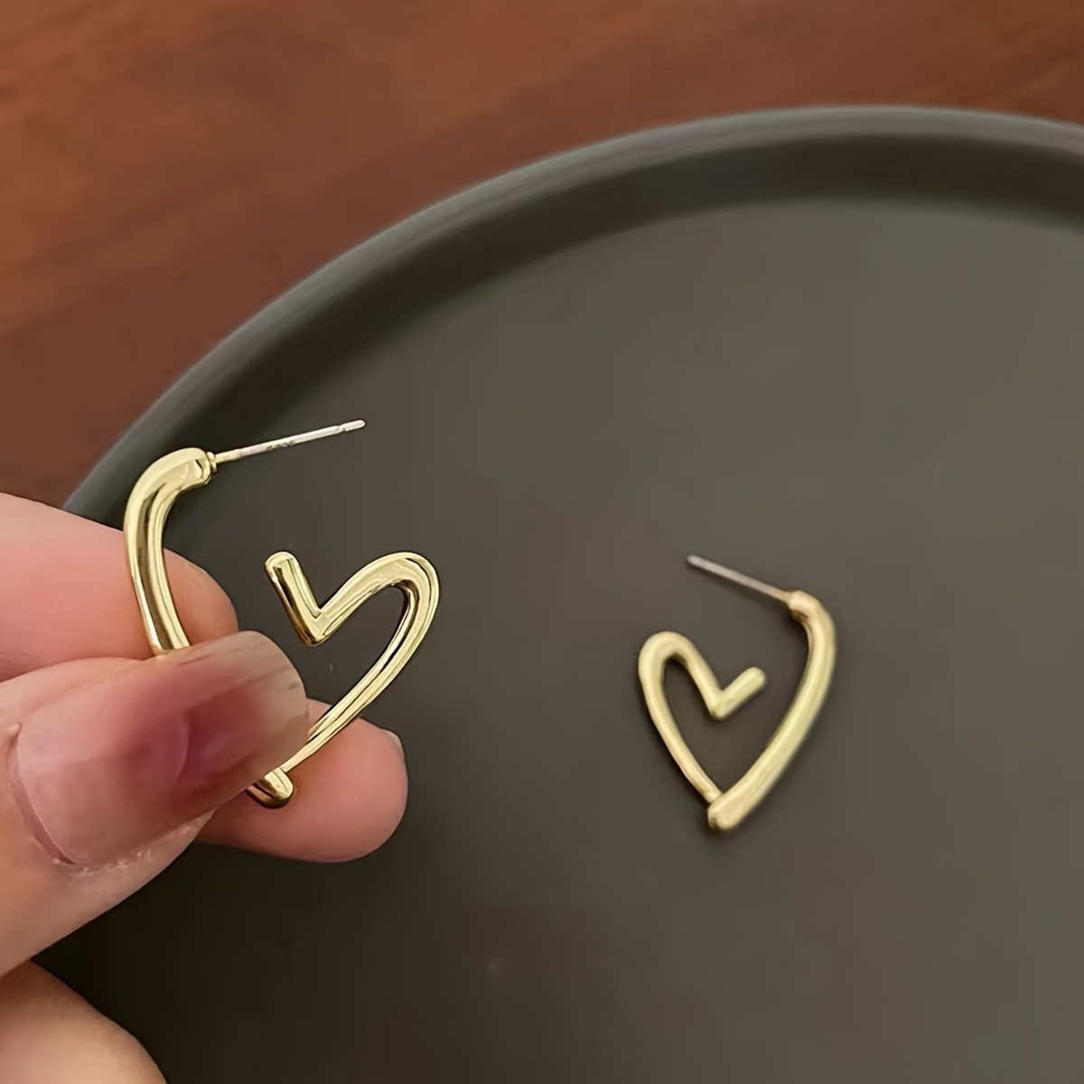 A pair of hollow heart stud earrings, hypoallergenic 925 silver needle, high quality 304 stainless steel, casual theme, perfect holiday gift