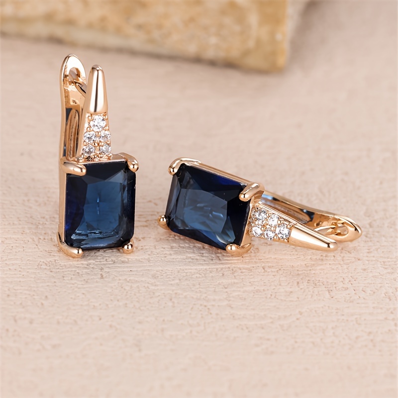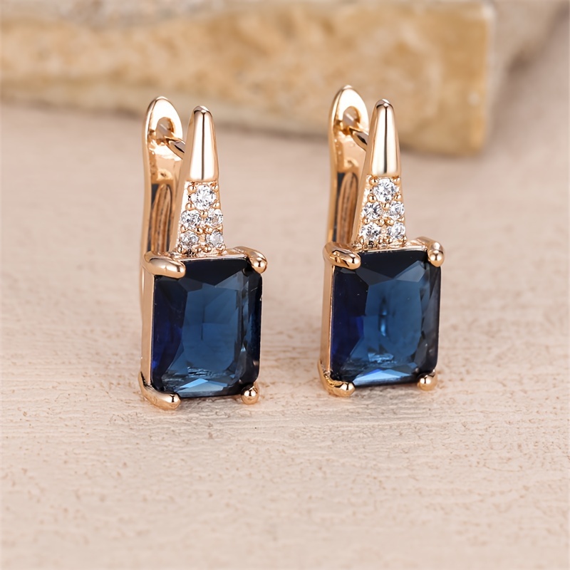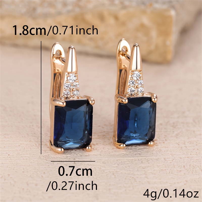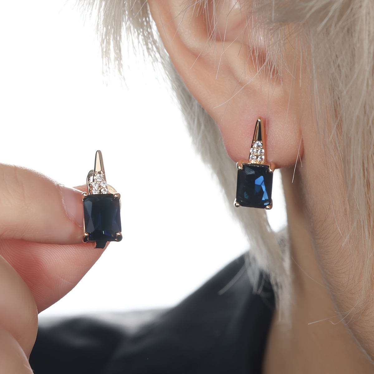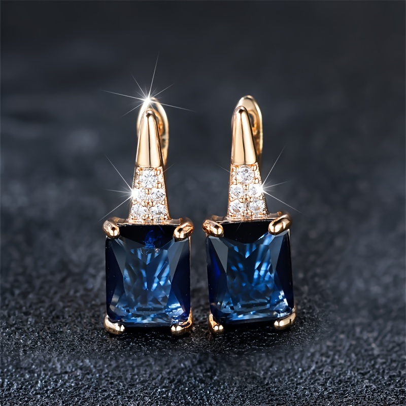 A pair of sparkling blue square stone earrings, suitable for women, with a luxurious sparkling design, the perfect wedding gift, perfect for role-playing.