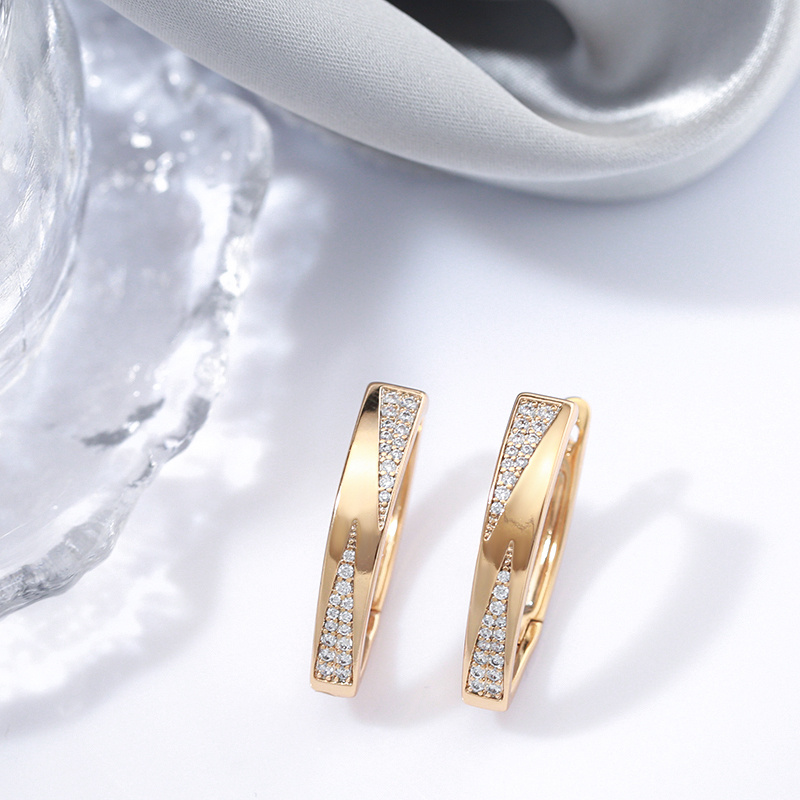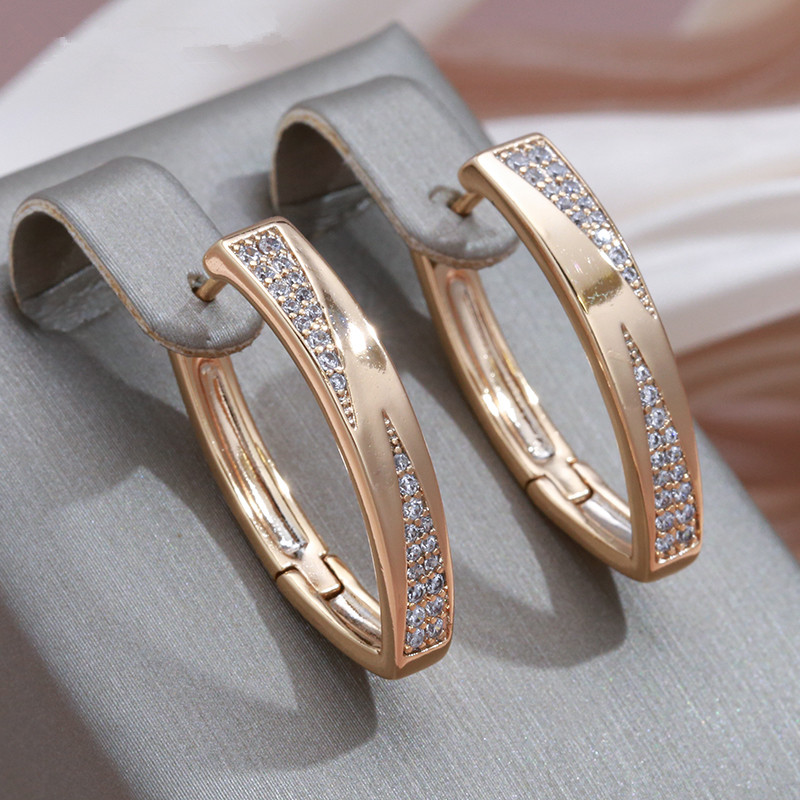 A pair of stylish copper stud earrings, using synthetic zircon, vintage style bridal wedding jewelry, high-end pendant earrings, suitable for women