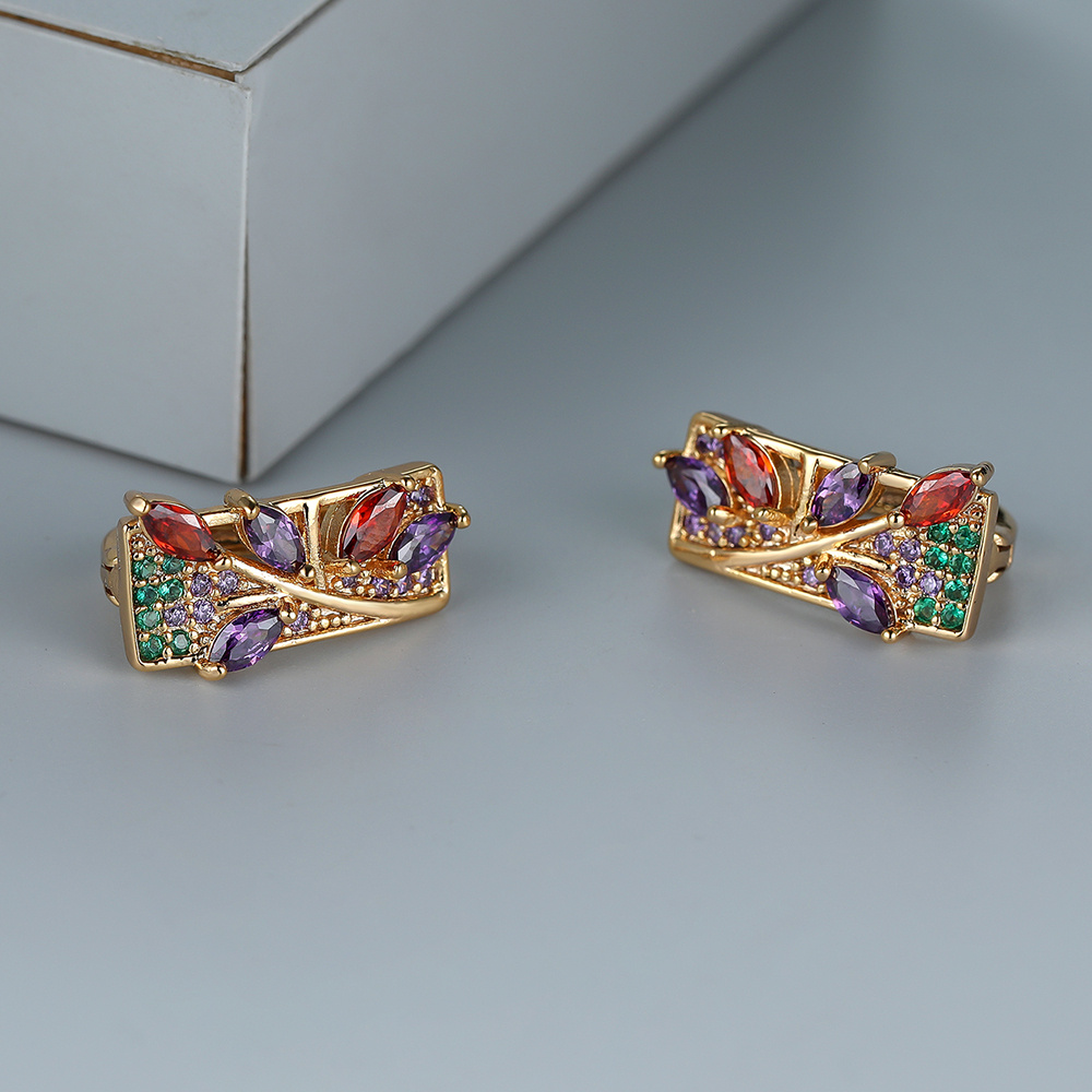 A pair of stylish safflower drop earrings, synthetic diamonds, copper needles, luxury wedding jewelry, colorful cubic diamond drop earrings