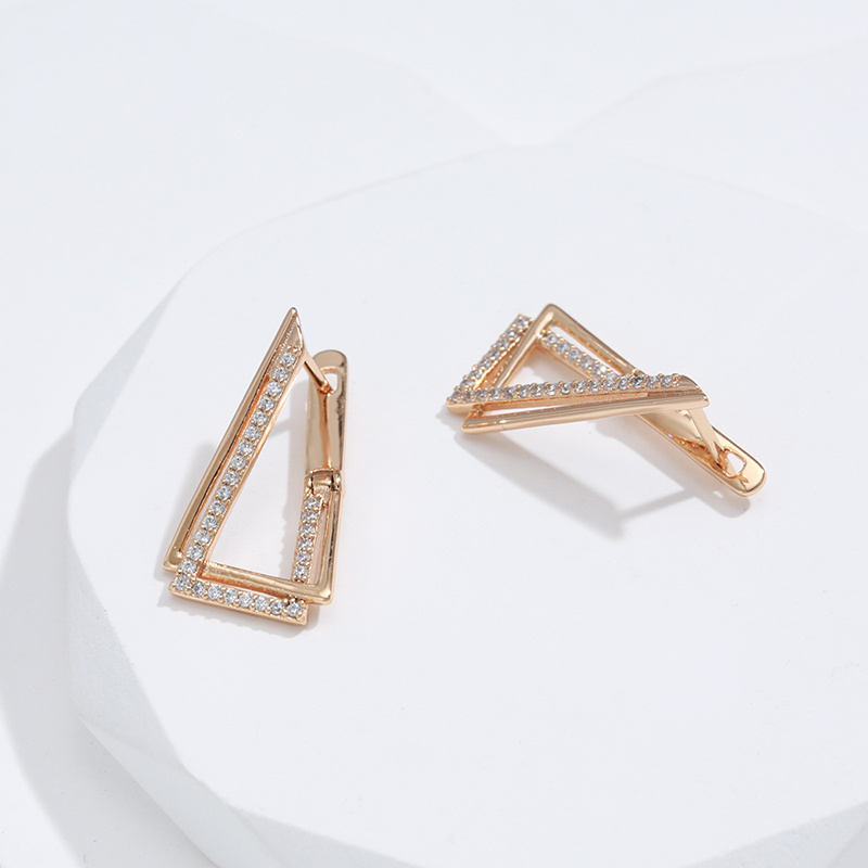 A pair of triangular geometric gold earrings, suitable for women, fashionable and delicate jewelry, one-touch drop earrings, suitable for role-playing
