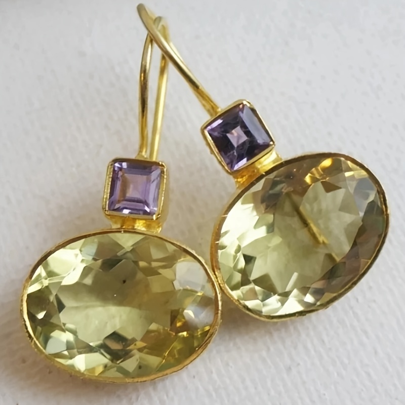 A pair of vintage bohemian 14K gold-plated brass stud earrings with champagne glass drops and purple trim - elegant drop ear stud earrings for Women's daily wear and gift giving, Christmas ornament collection