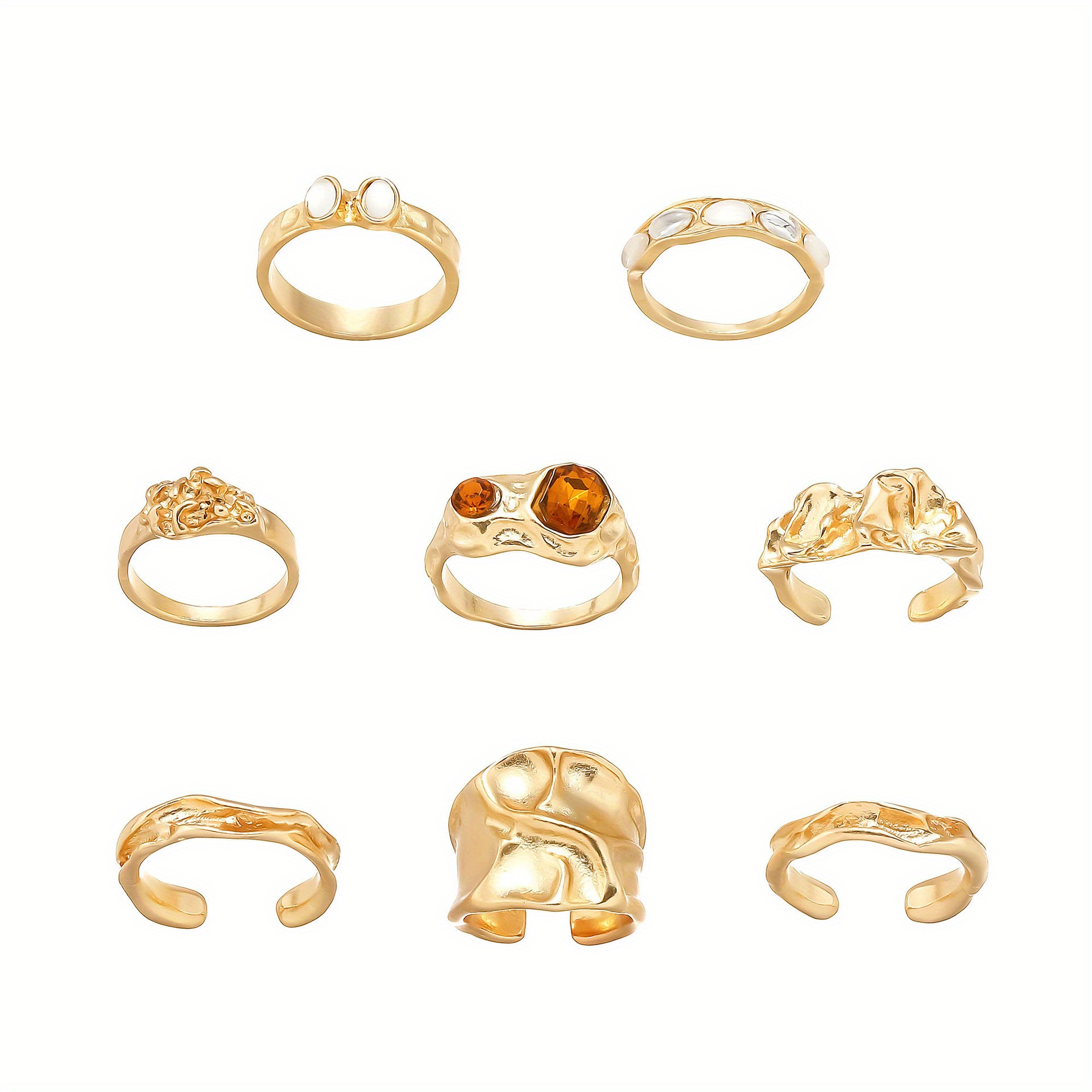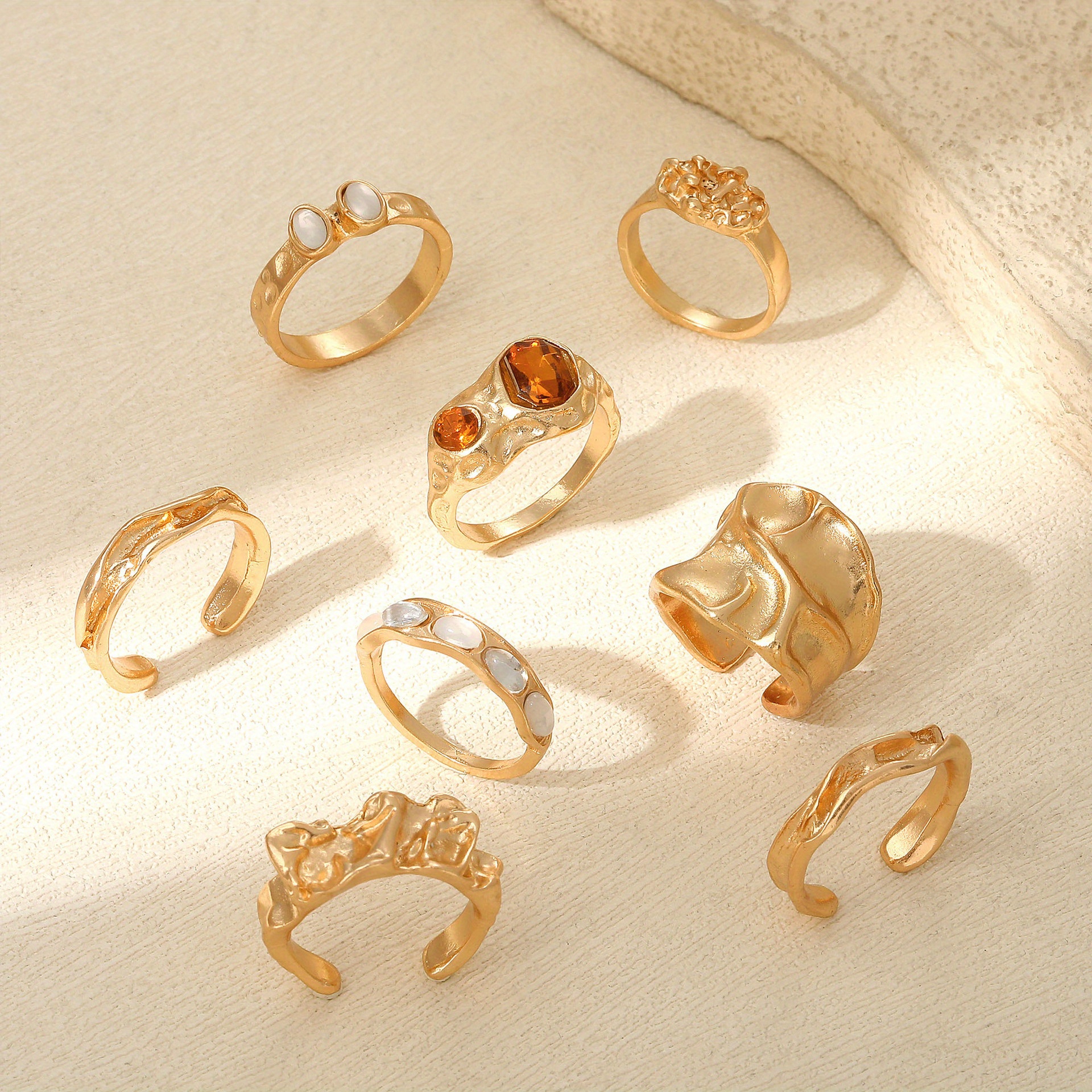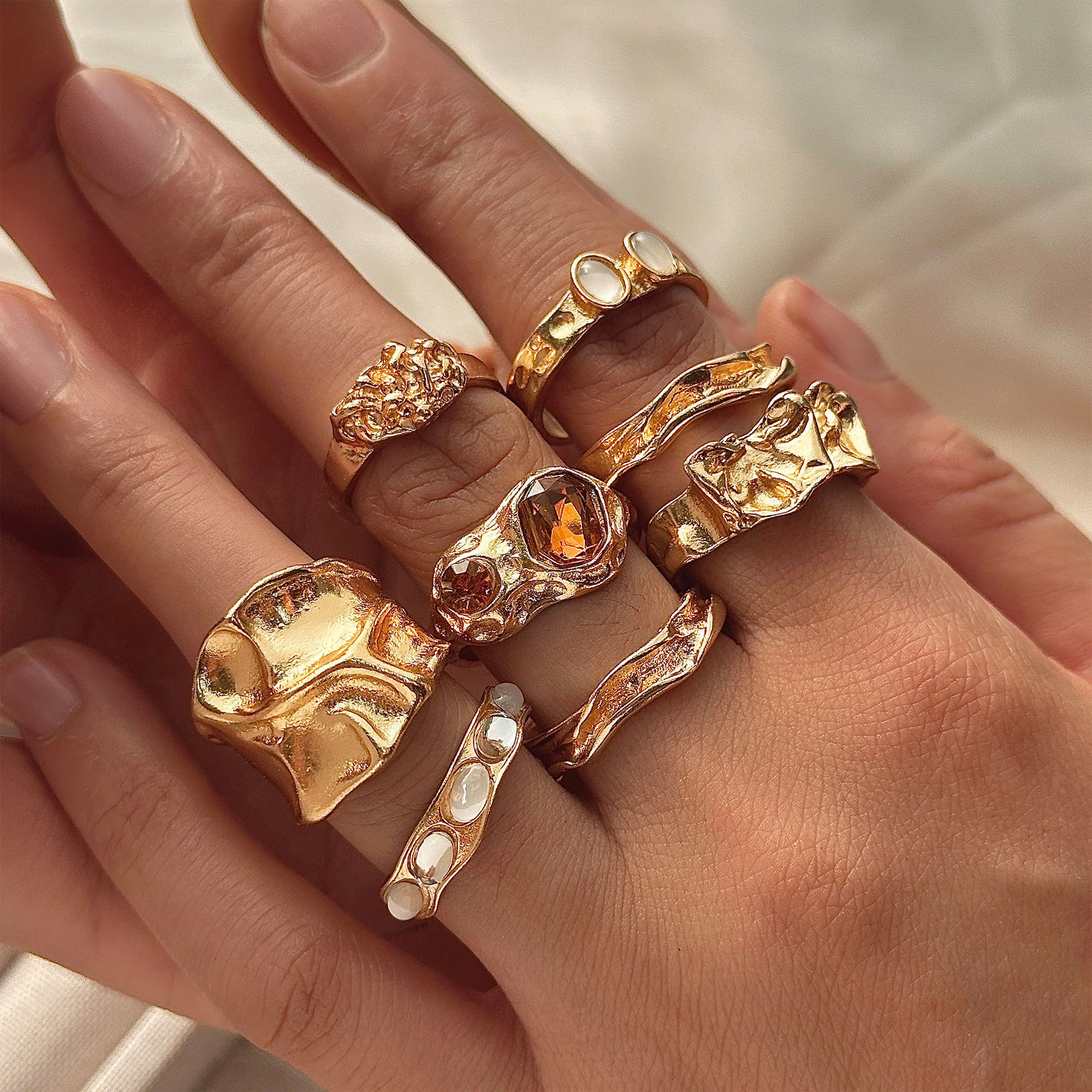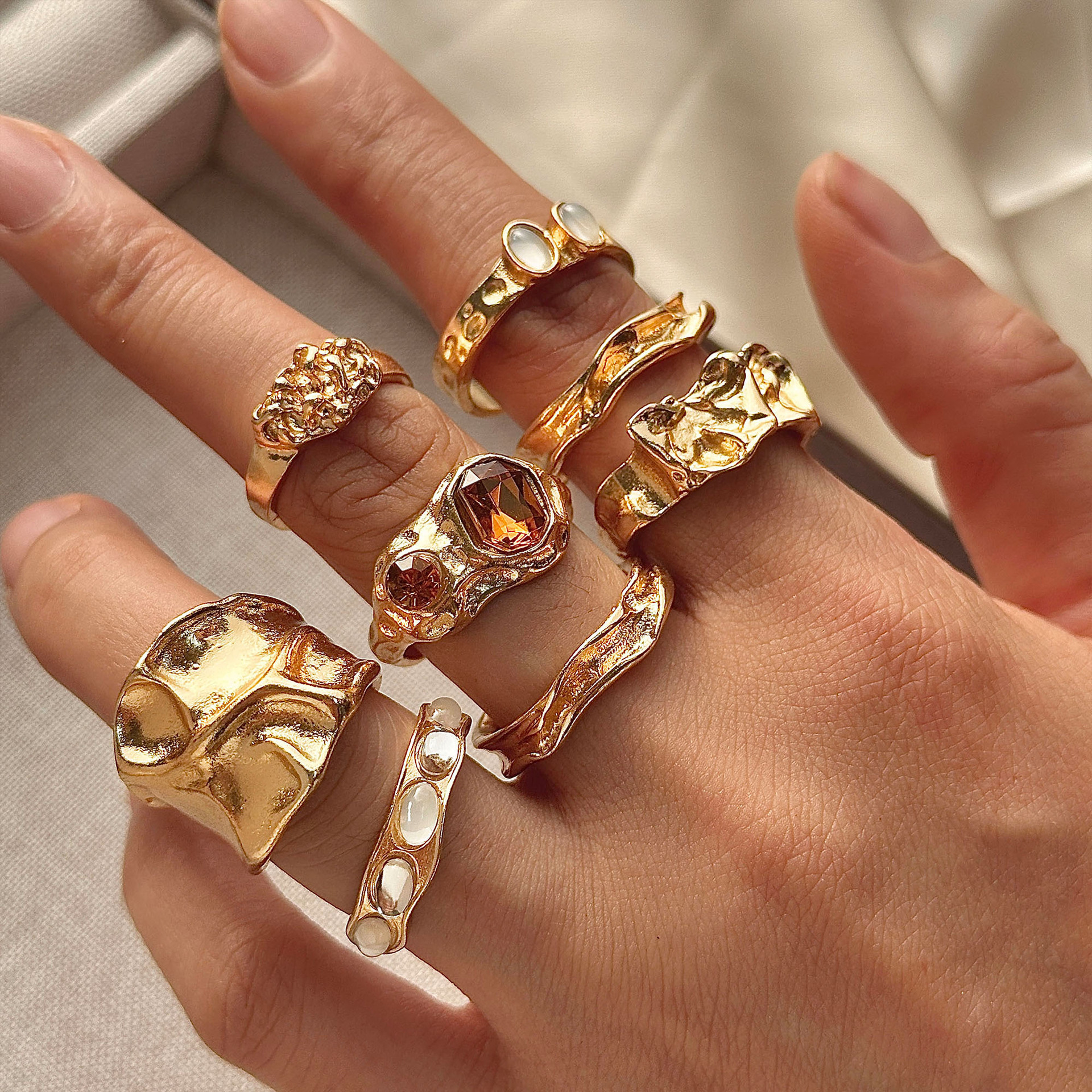 A Set of Heavy Baroque Gold-plated Metal Rings with Irregular Geometric Retro Geometric Design Can Be Easily Matched, Ideal for Casual Gatherings, Suitable for Women with A Sweet and Modern Temperament.
