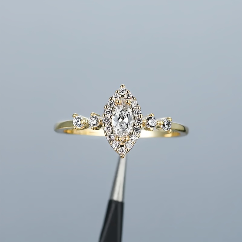 A stylish and luxurious gold four-clawed horse eye-shaped synthetic zircon ring for women, perfect for engagements, weddings, party jewelry, and anniversary gifts.