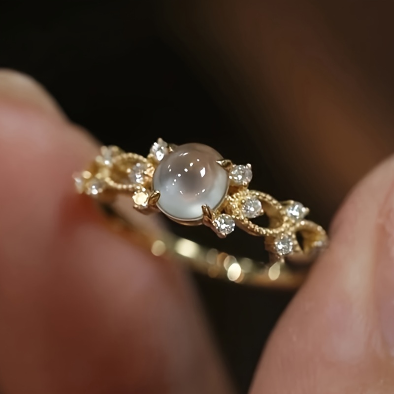 A stylish and luxurious gold moonstone ring for women's engagements, weddings, daily wear, parties, and anniversary gifts.