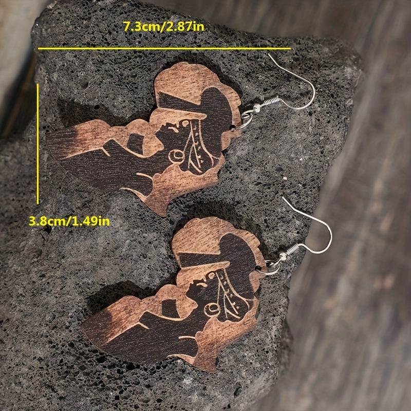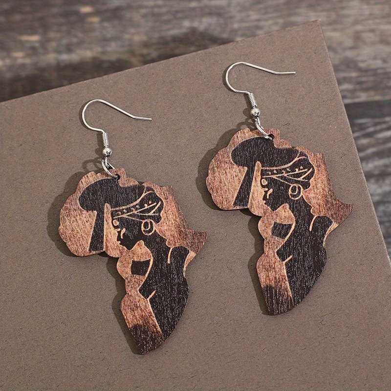 Africa map creative design, with black beautiful pattern, pendant earrings, retro ethnic style wooden jewelry, fashionable women's gifts