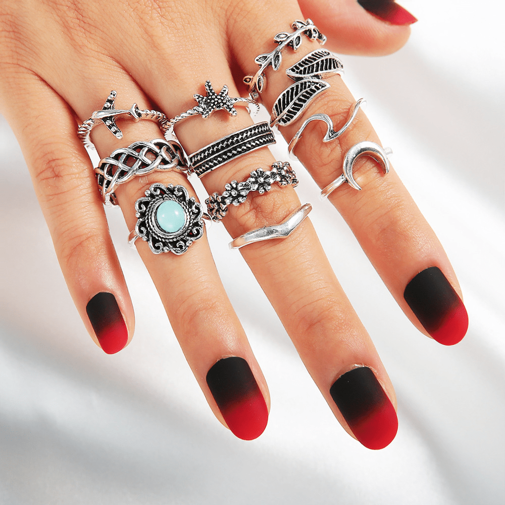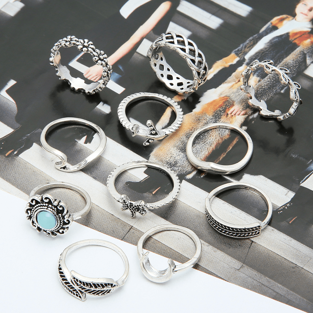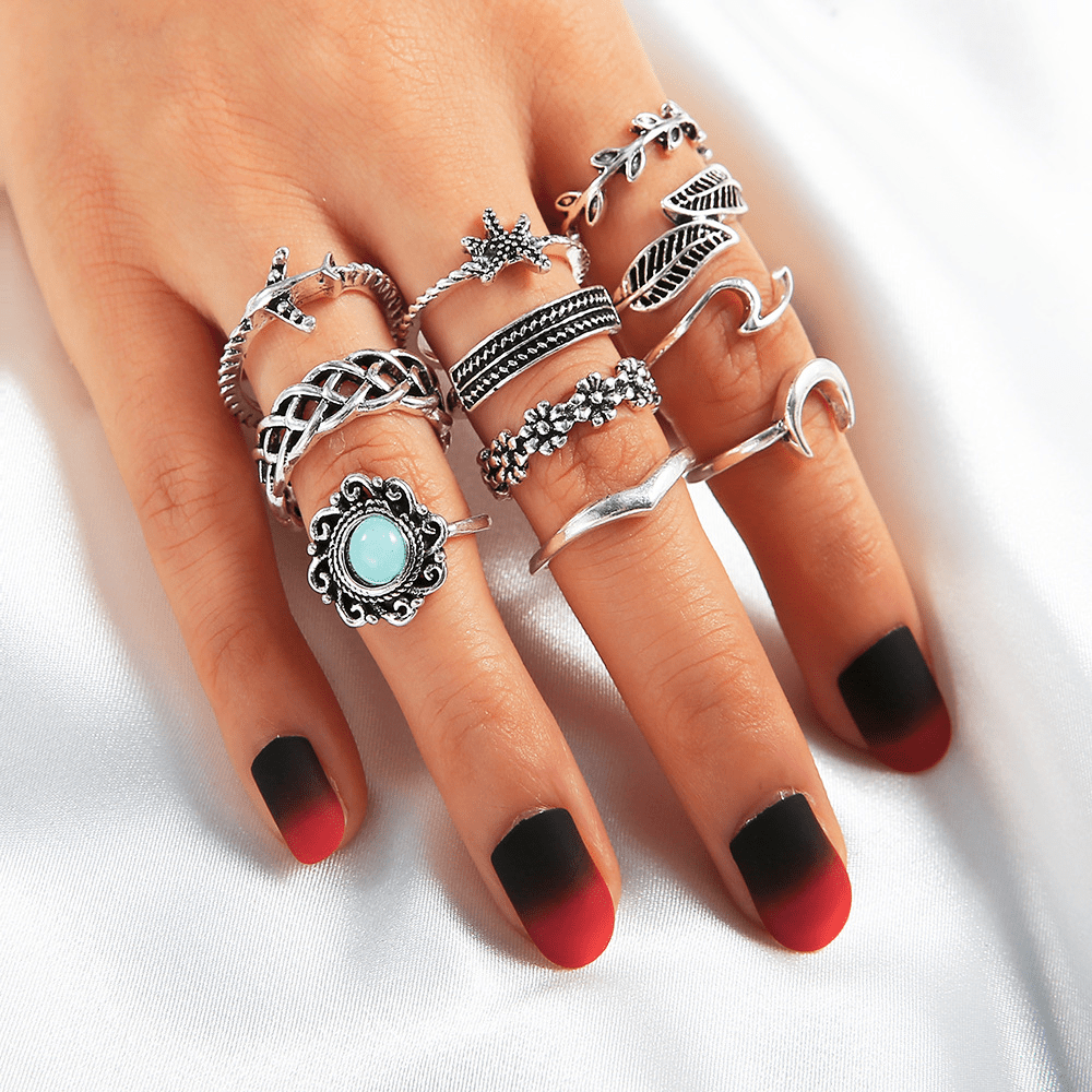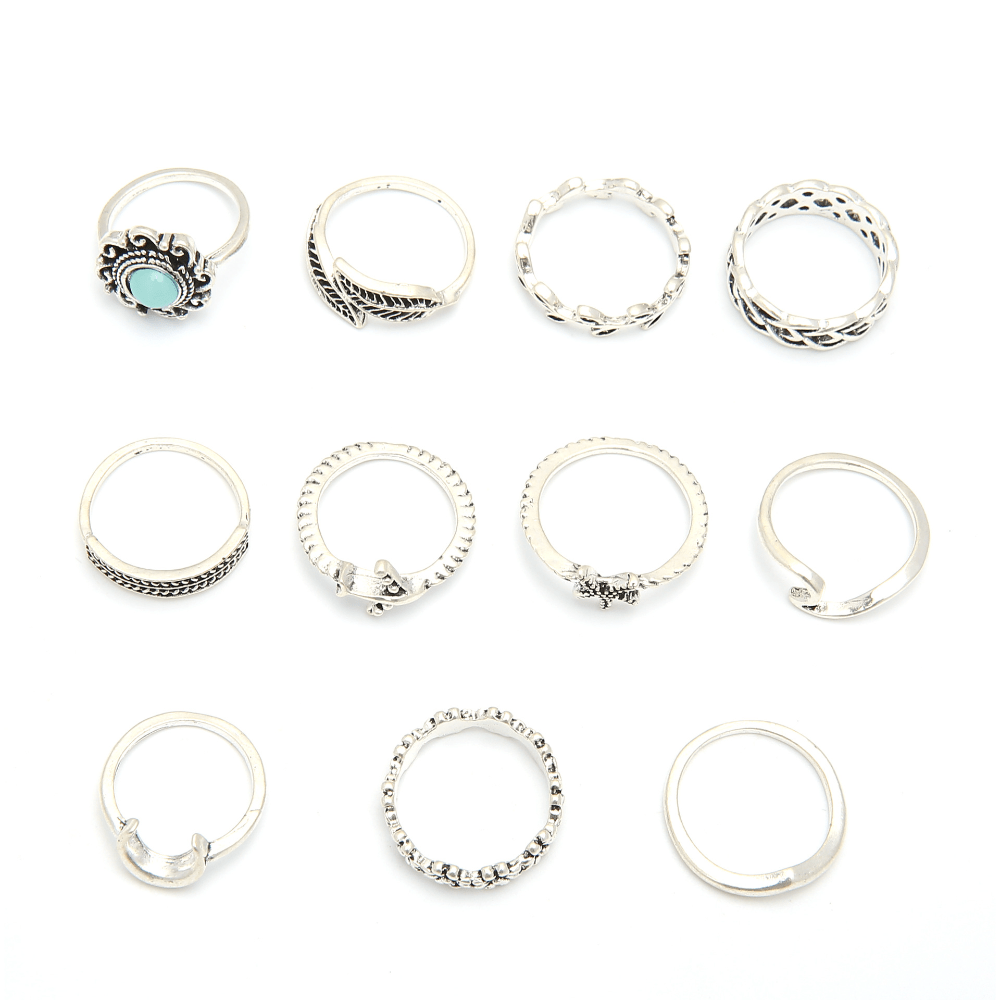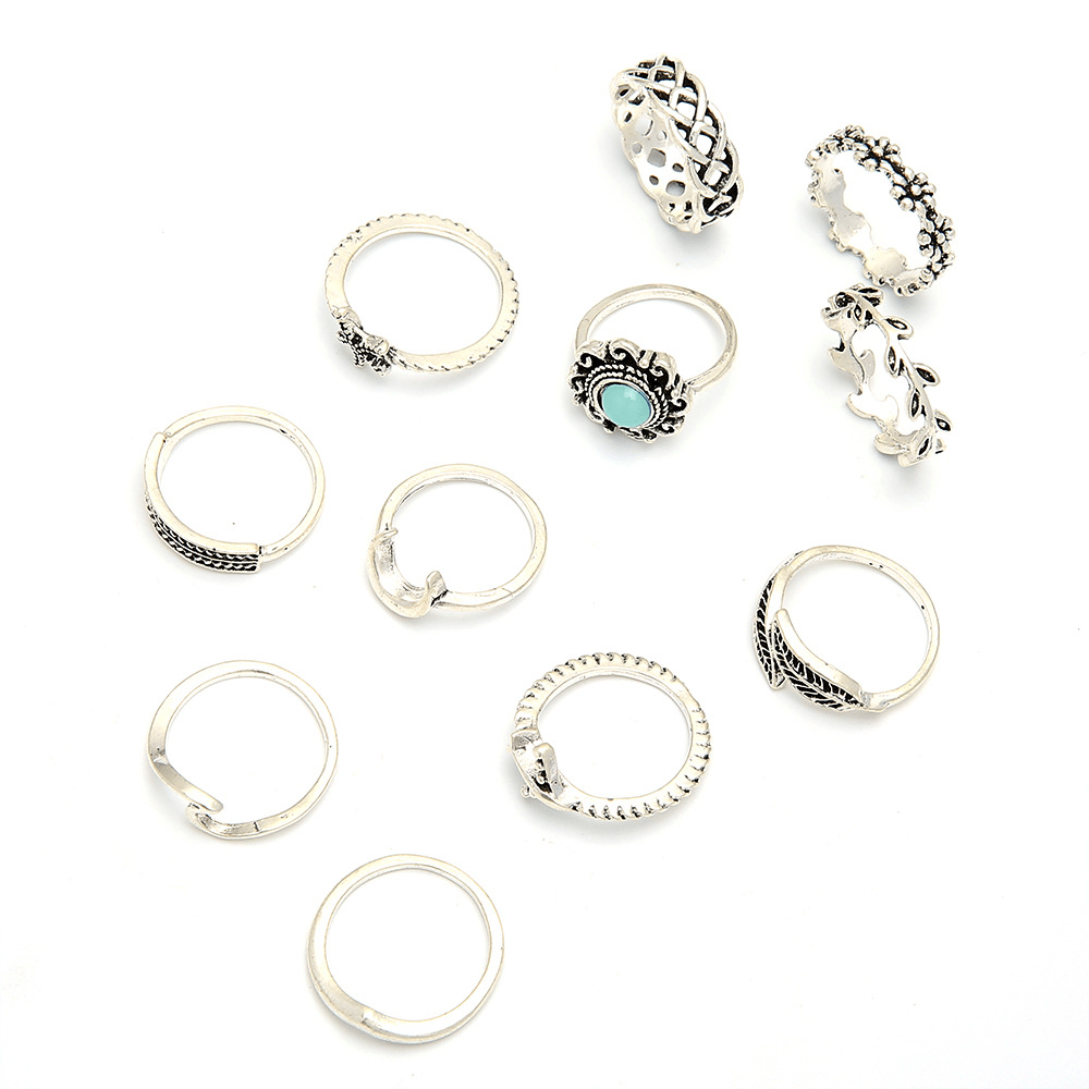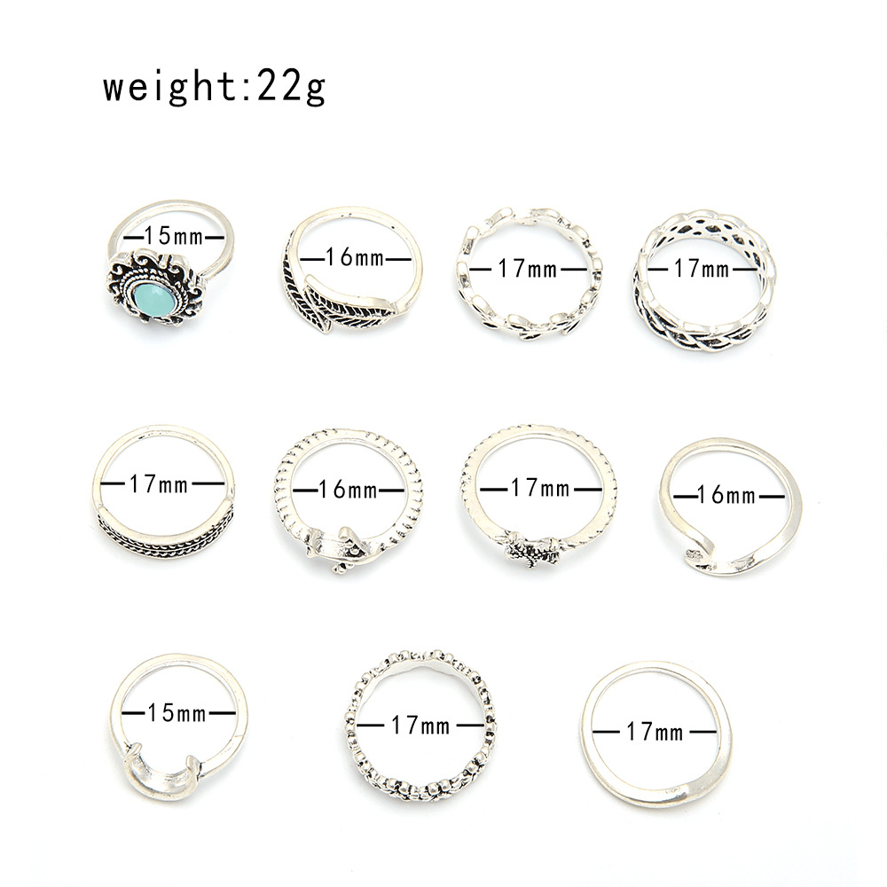 Airplane Moon Gem Hollow Carved Leaf Star 11-piece Set Joint Ring Set