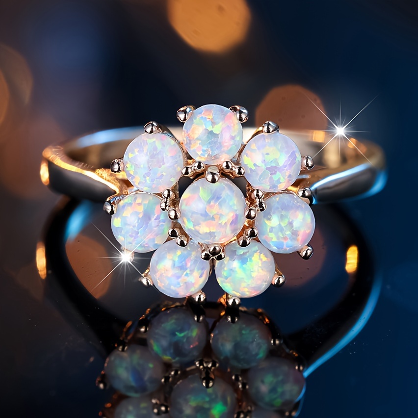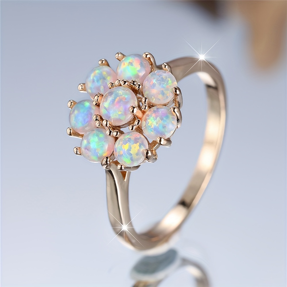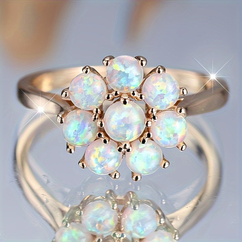 An elegant vintage-style copper floral engagement ring with synthetic iris, perfect for parties and weddings, any season of jewelry gifts.