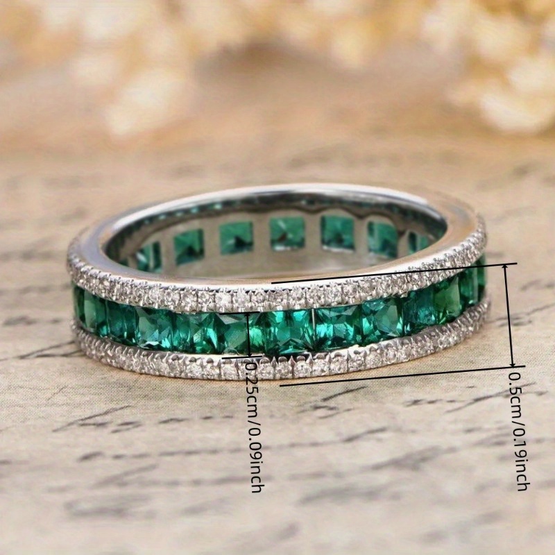 An Eternal Love Ladies Ring, Simple Square Green Synthetic Zircon Broadband, Copper Base, Princess Cut, May Birthday Stone, Suitable for Daily Wear, Engagement, Weddings, Parties, Valentine's Day Gifts