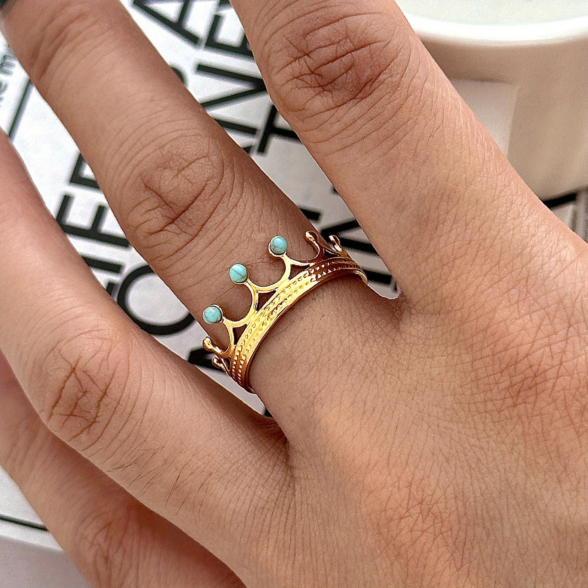 Ancient Filigree Crown Ring Women's Classical Court Light Luxury Retro Elegant Noble Ring