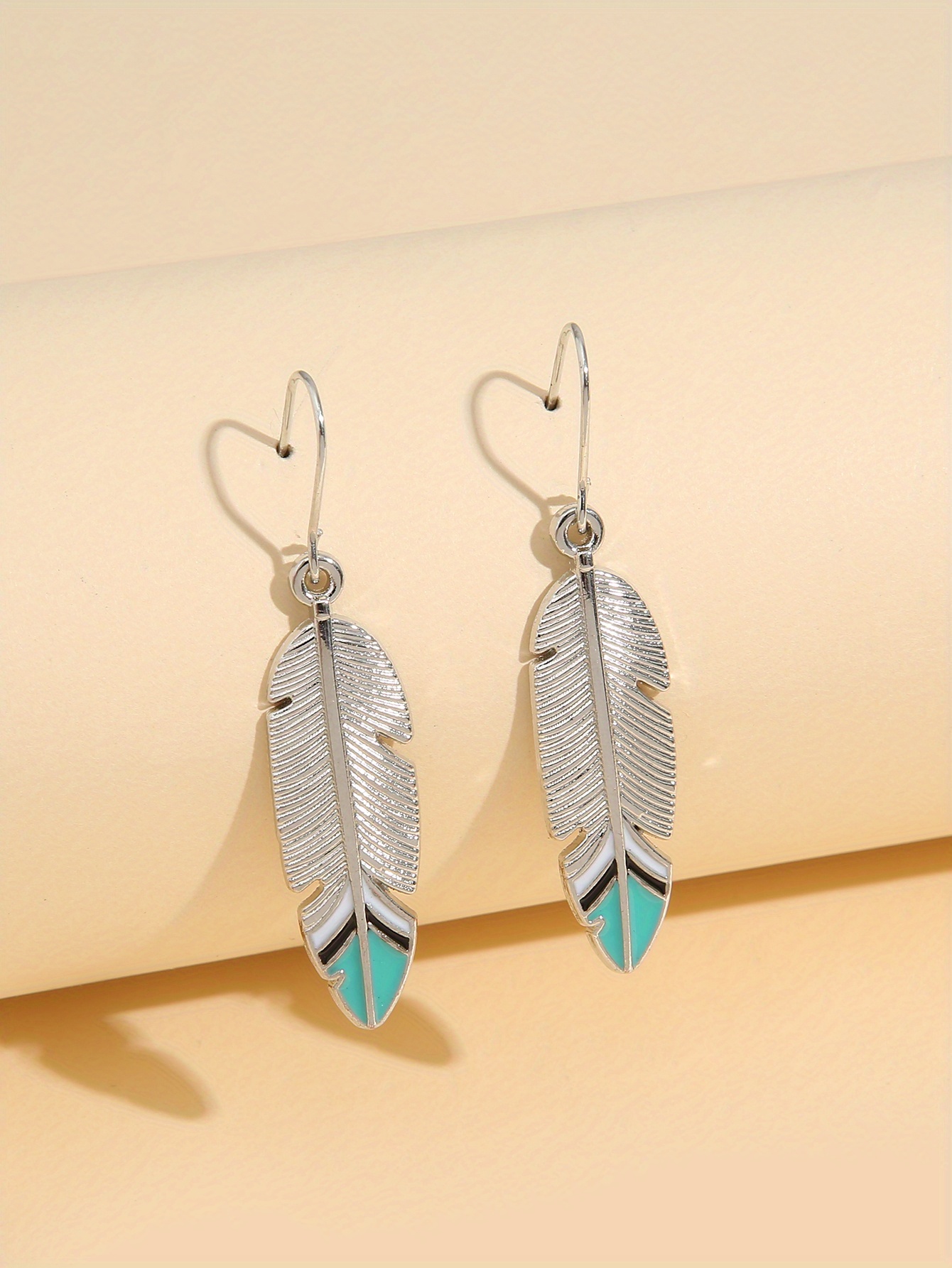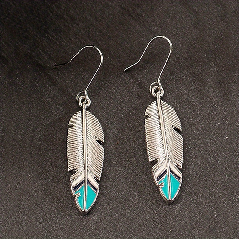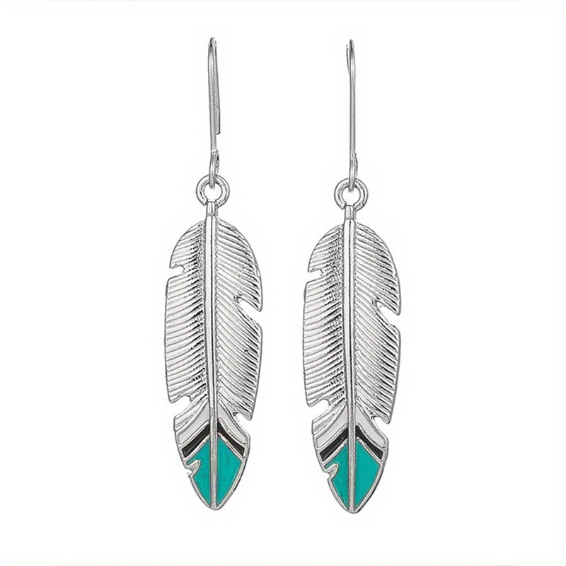 Antique Feather Leaf Design Pendant Earrings, Vintage Bohemian Zinc Jewelry, Holiday Earrings