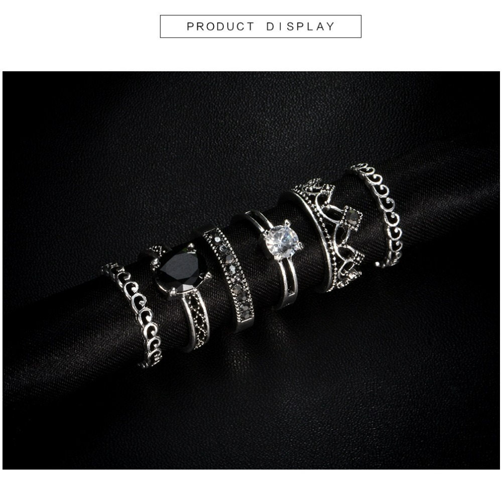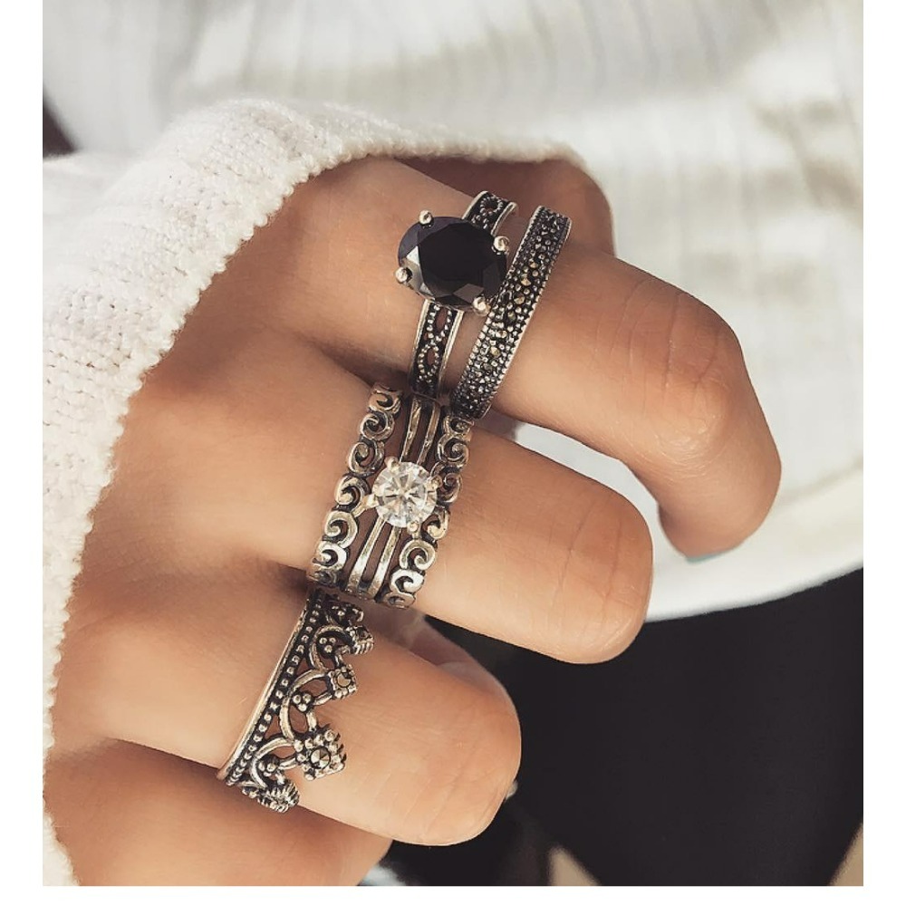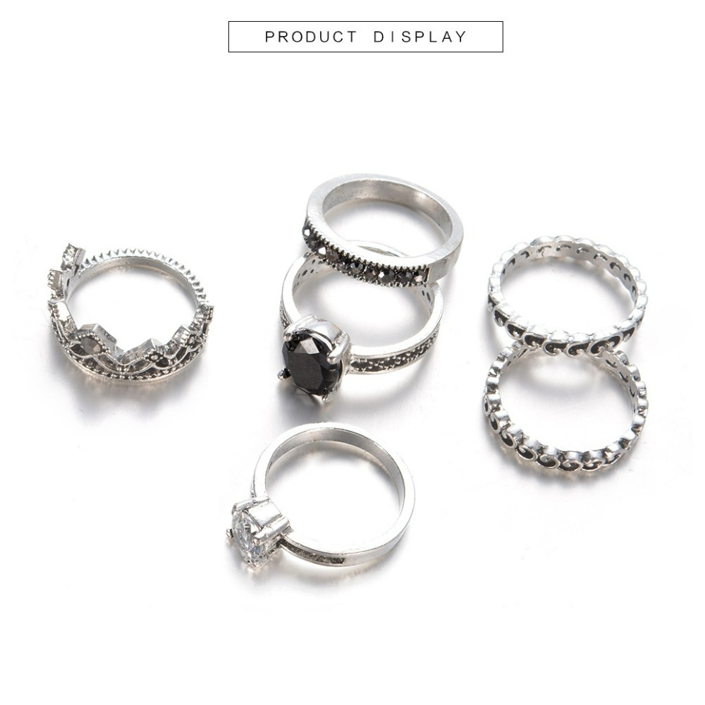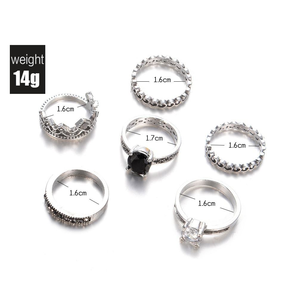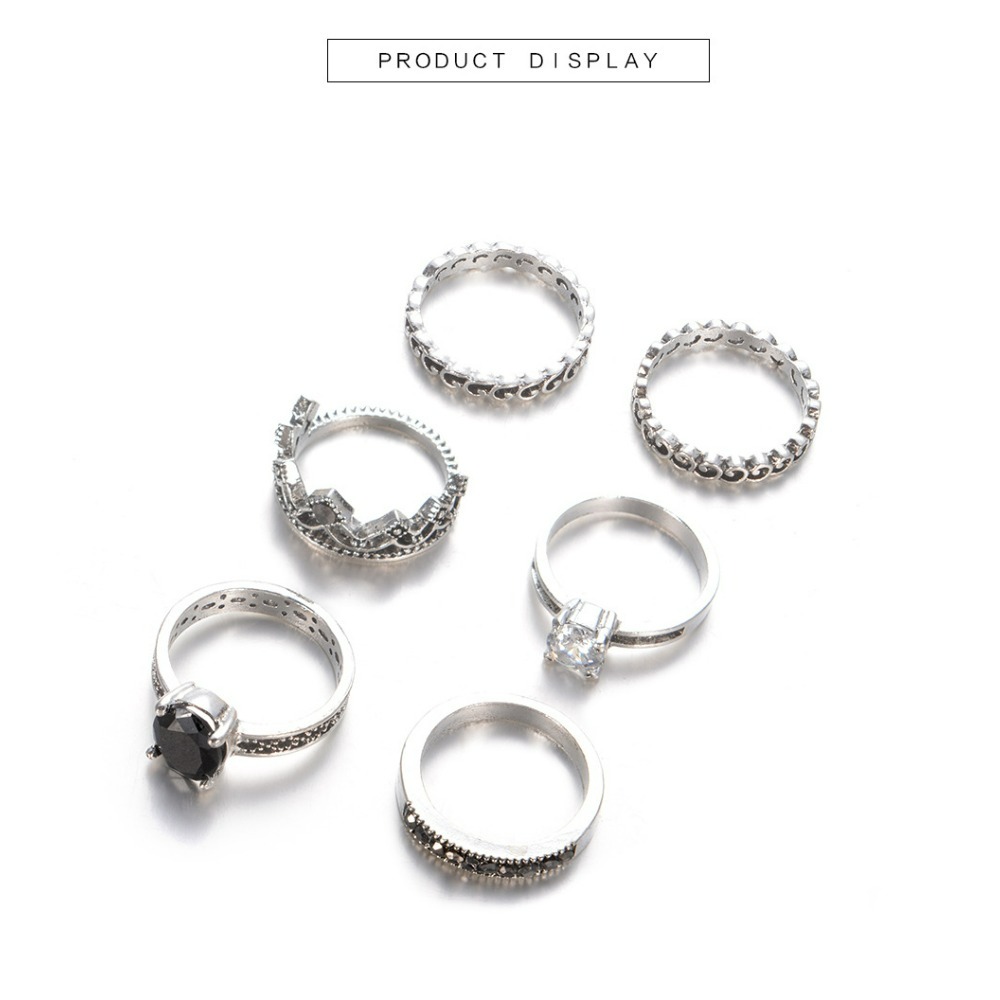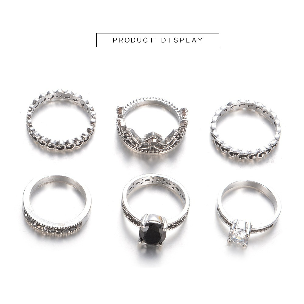 Antique silver retro 6-piece ring set