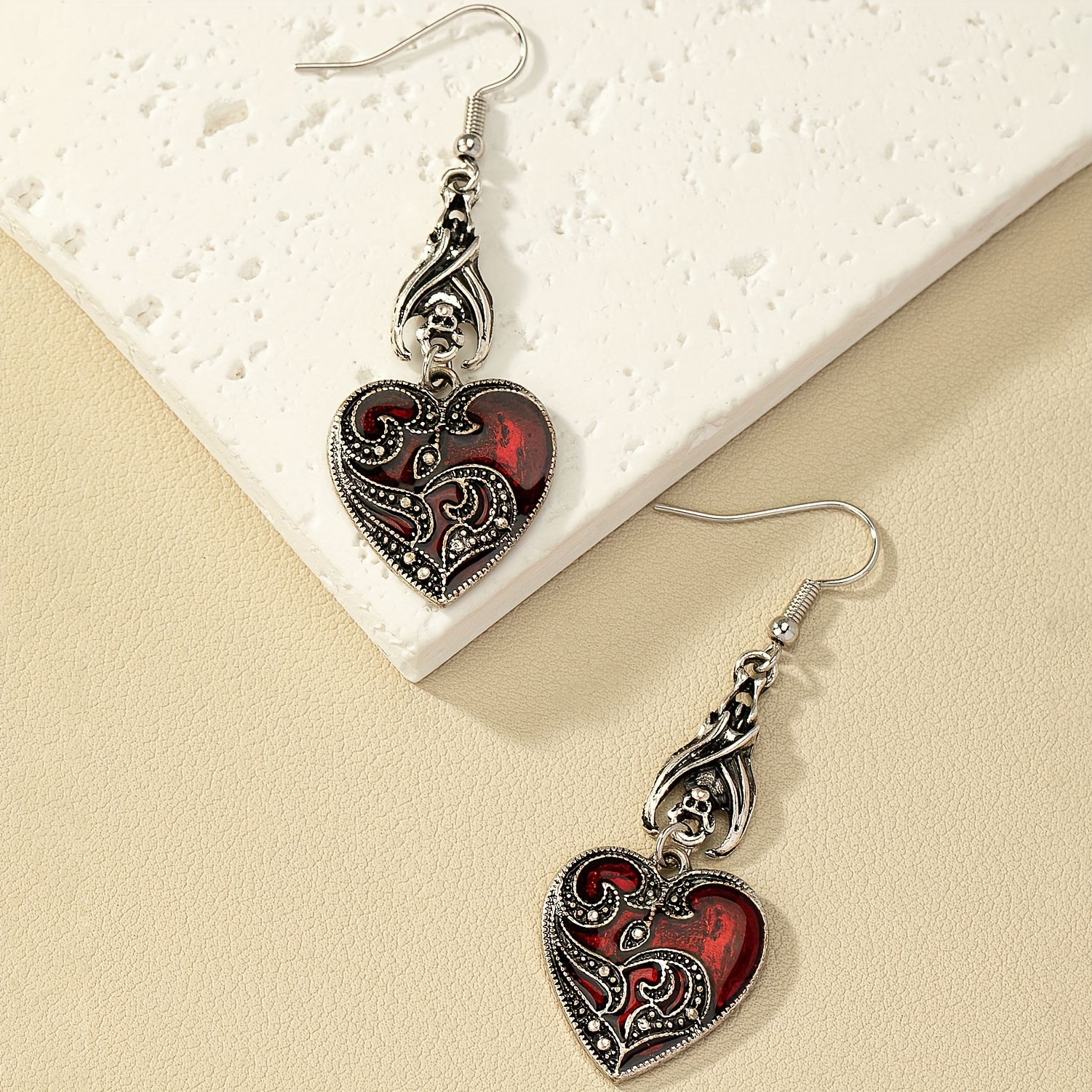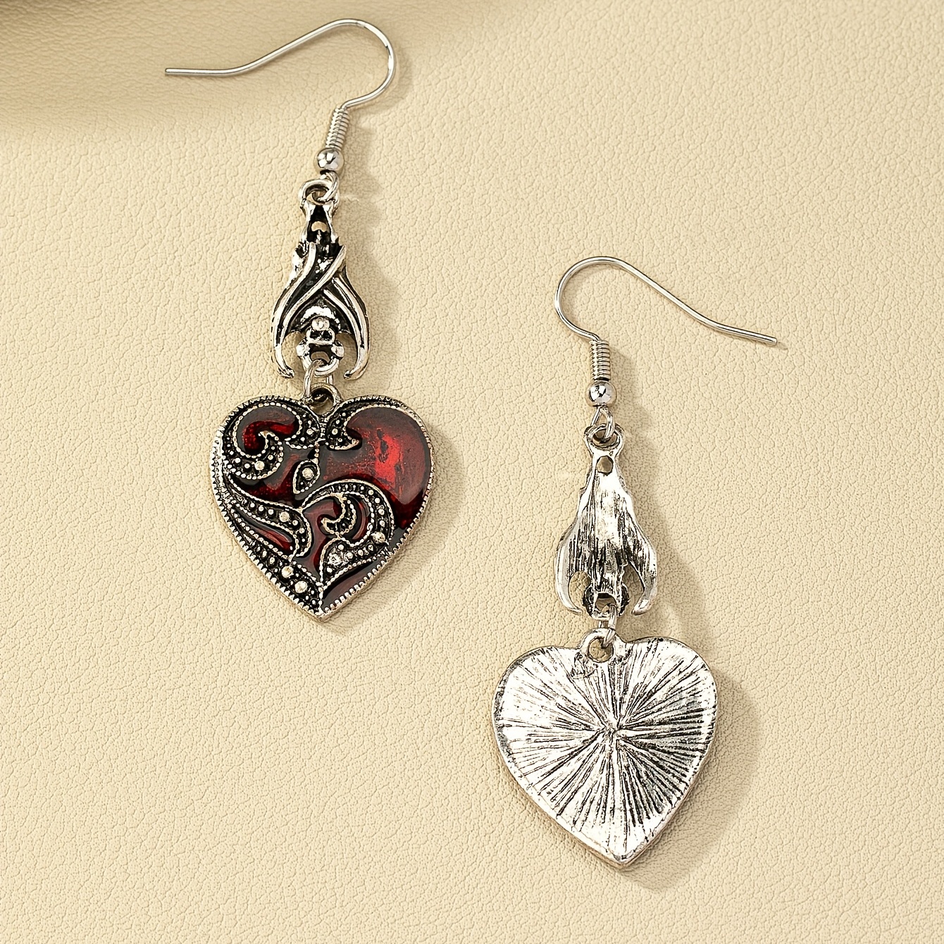 Bat Red Heart Design Pendant Earrings Vintage Gothic Zinc Alloy Jewelry Creative Women's Gifts Halloween Accessories