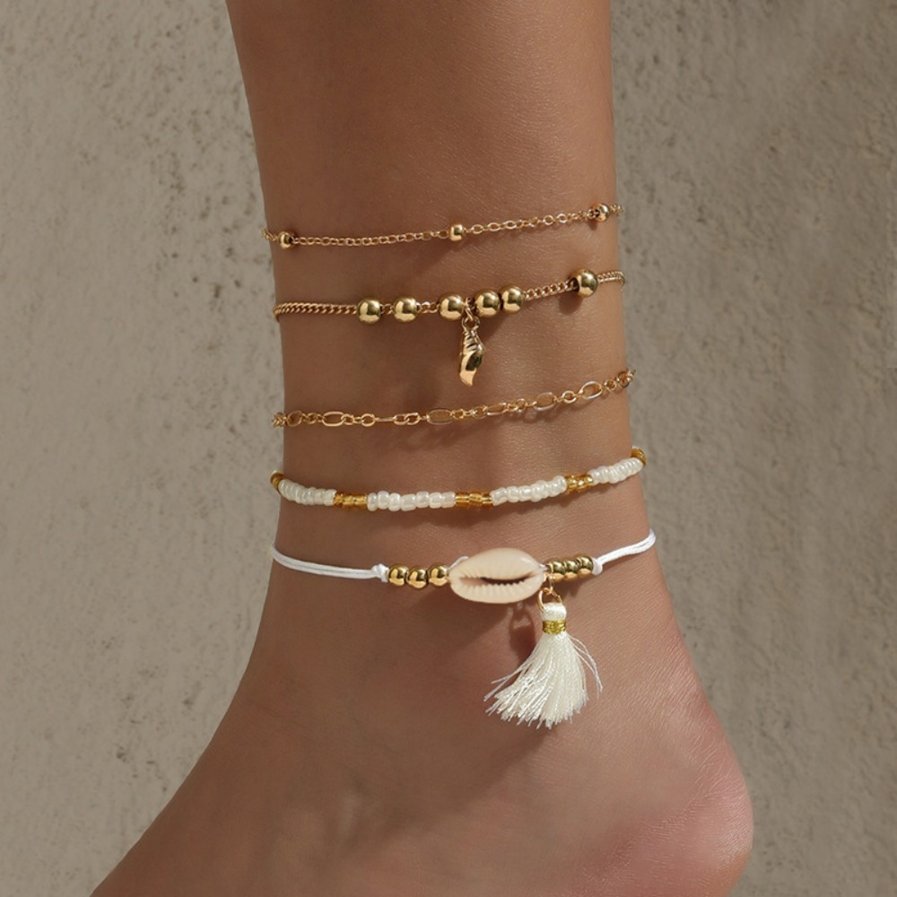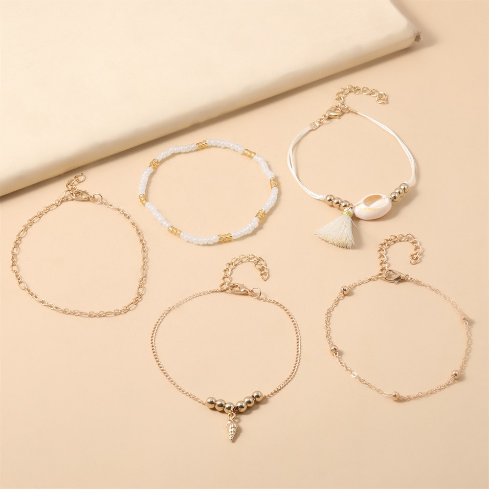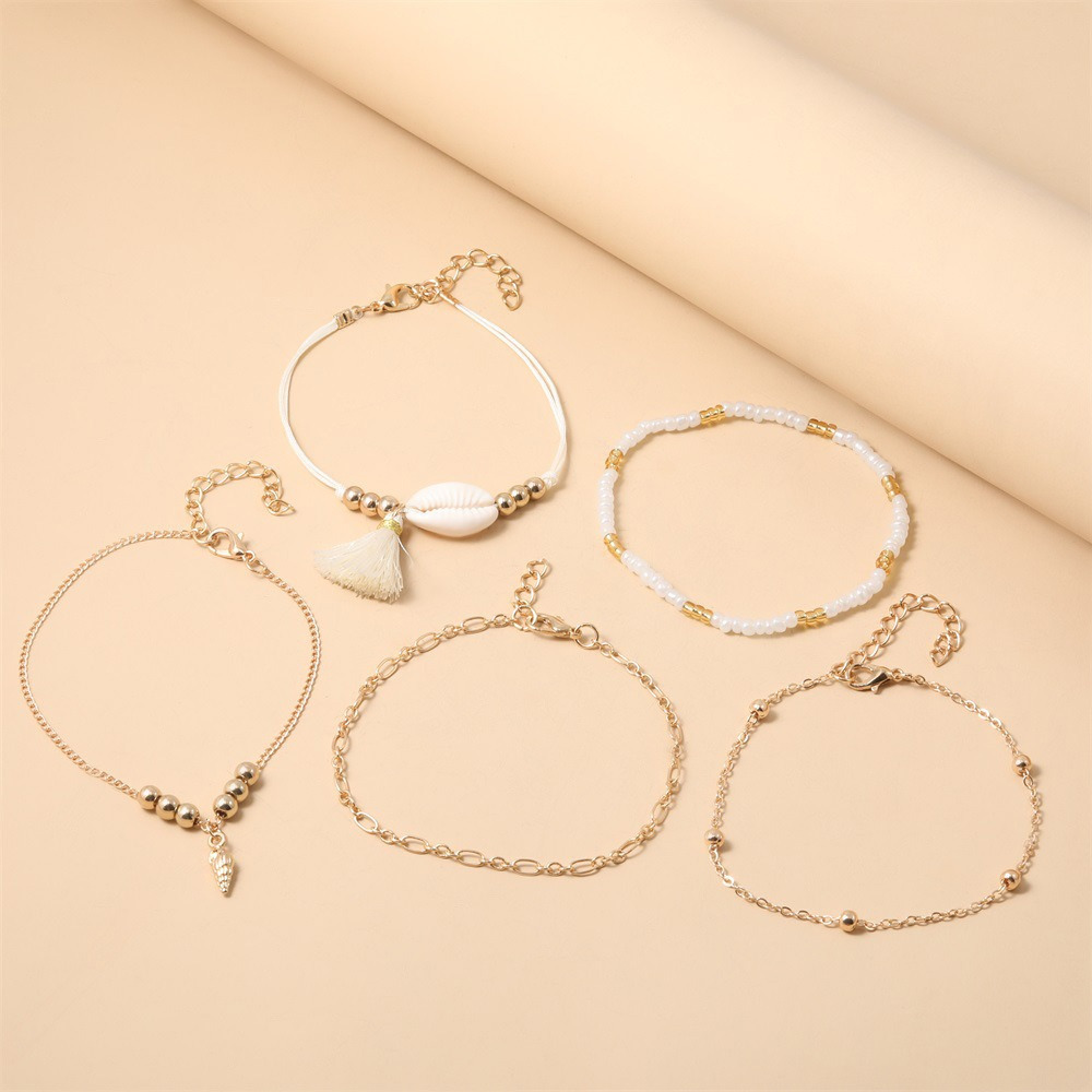 Beach Rhinestone Set Personalized Gravel Anklet, Fringed Retro Rice Bead Shell Foot Decoration