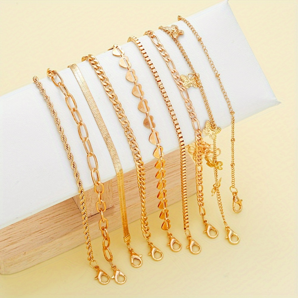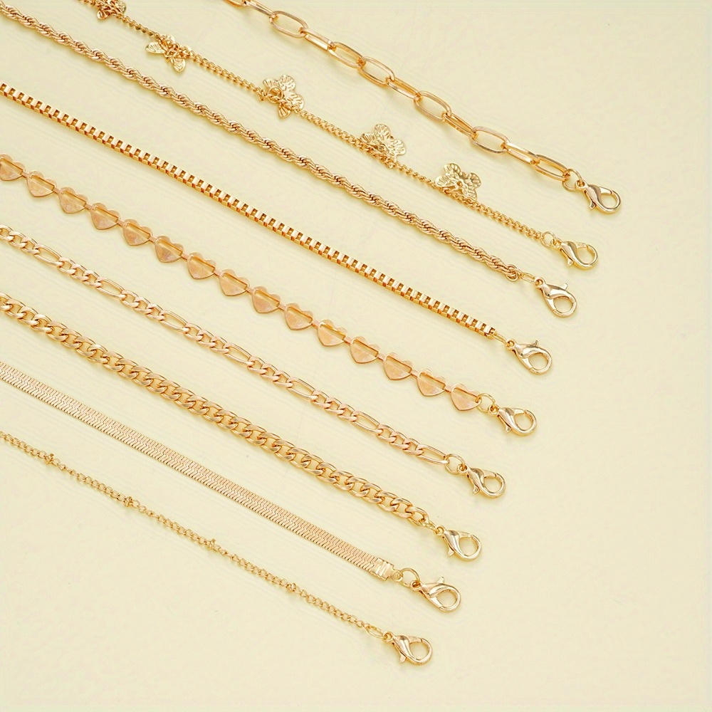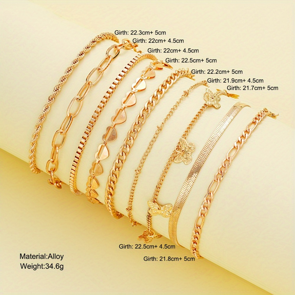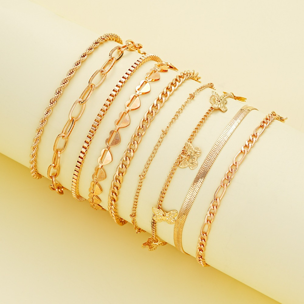 Beach wind personalized butterfly chain anklet 9-piece set women's leisure simple vacation style foot decoration