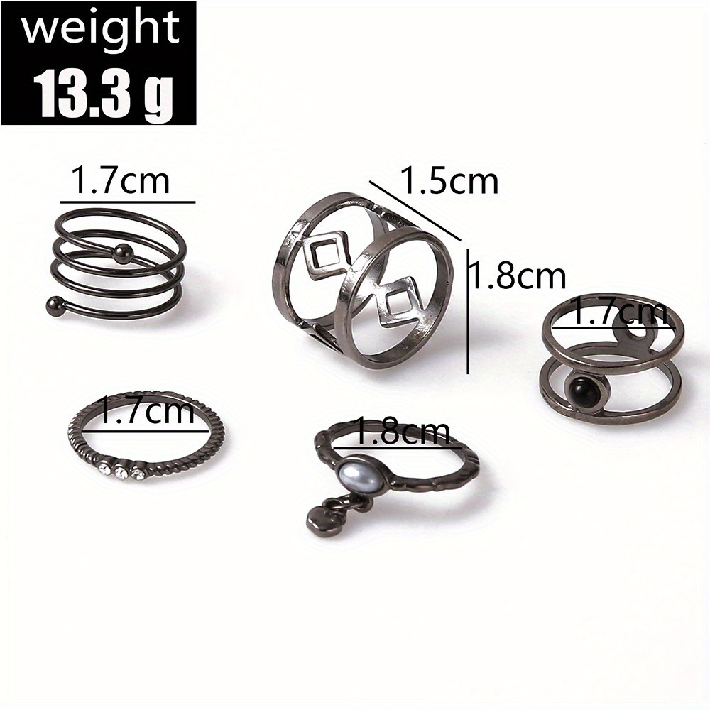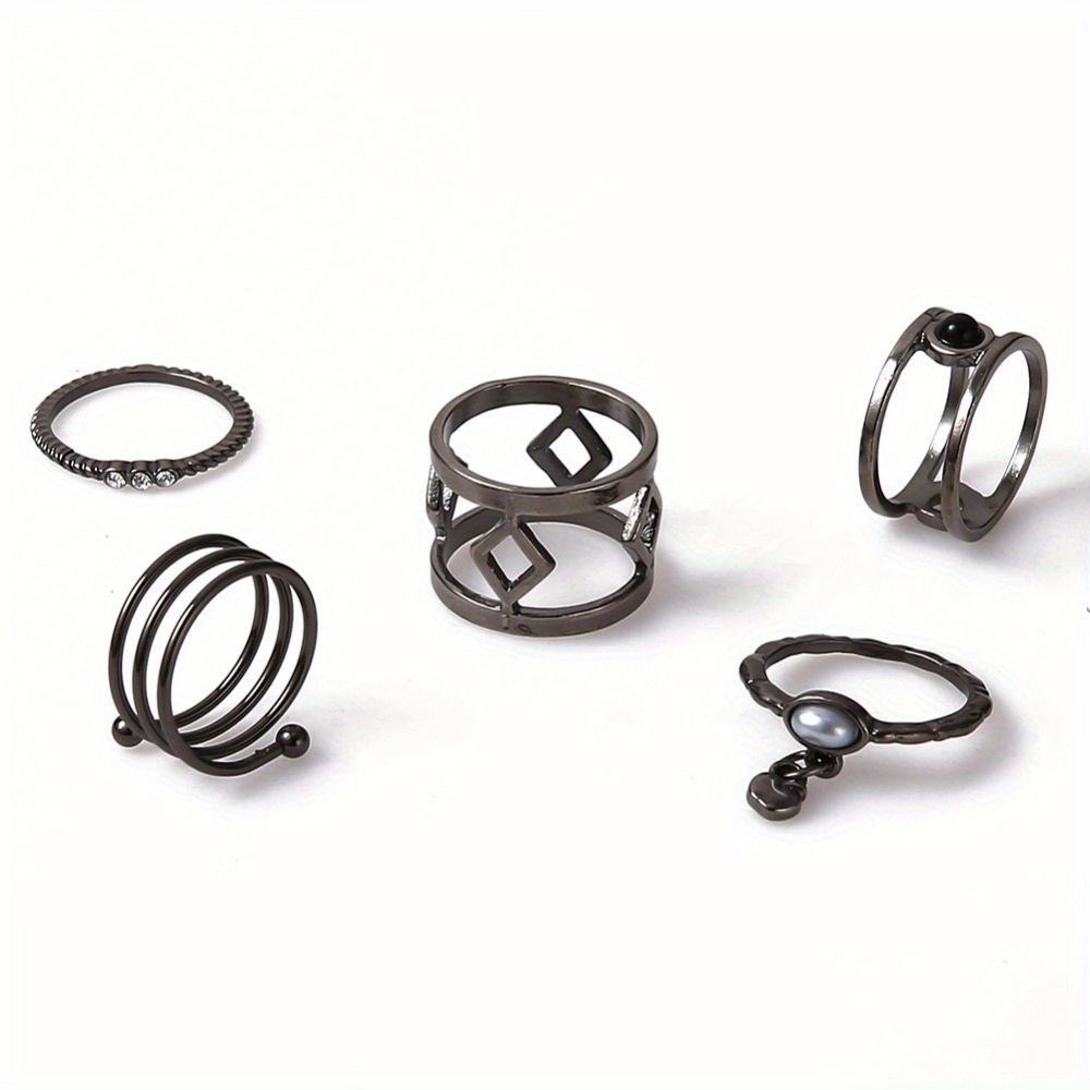 Black Articulated Ring Set 5-piece Creative Hollow Cylinder Spring Ring