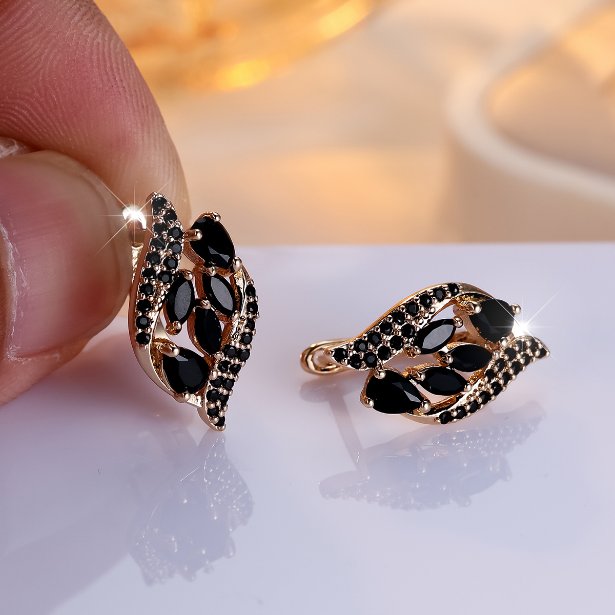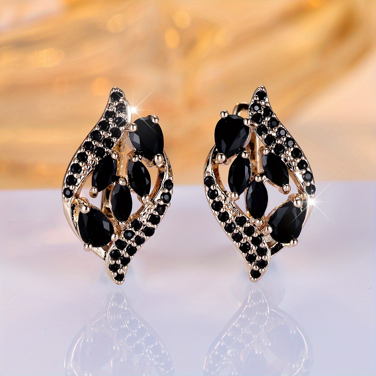 Black oval drop earrings, copper earrings, synthetic Zirconia, unplated, fashionable Women's water drop earrings.